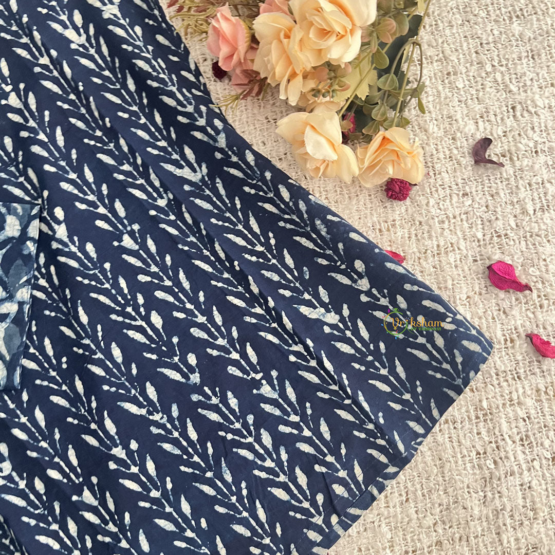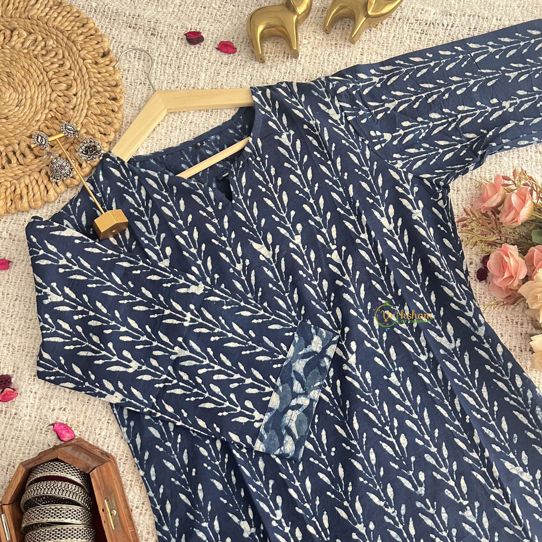 Introducing Vriksham Dark Blue Handblock Cotton Short Kurti, the perfect blend of style and comfort. Made with 100% cotton and handblock printing, this elegant 3/4 sleeve kurti is suitable for both daily wear and office wear. Elevate your wardrobe with this luxurious piece and make a statement wherever you go.