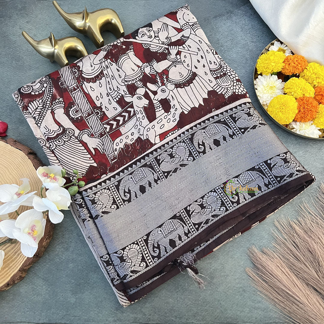 Vriksham Dark Red Kalamkari Saree with Kanchi Border-VS4318