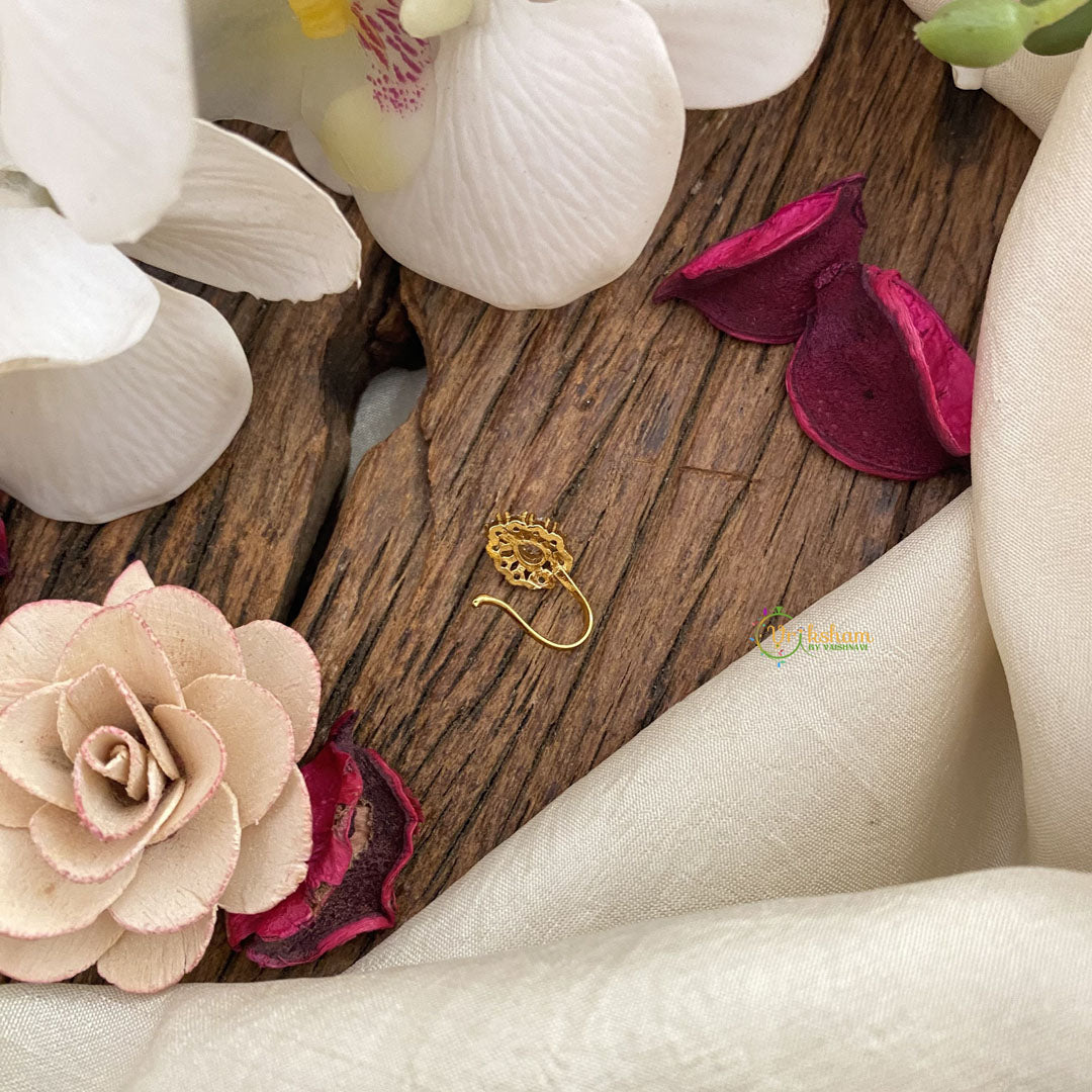 This stunning Vriksham Designer AD Stone Nath/Nose pin in white has been carefully crafted to add a touch of elegance and sophistication to your look. The intricate design and sparkling stones make it a perfect accessory for any special occasion. Elevate your style with this luxurious piece.