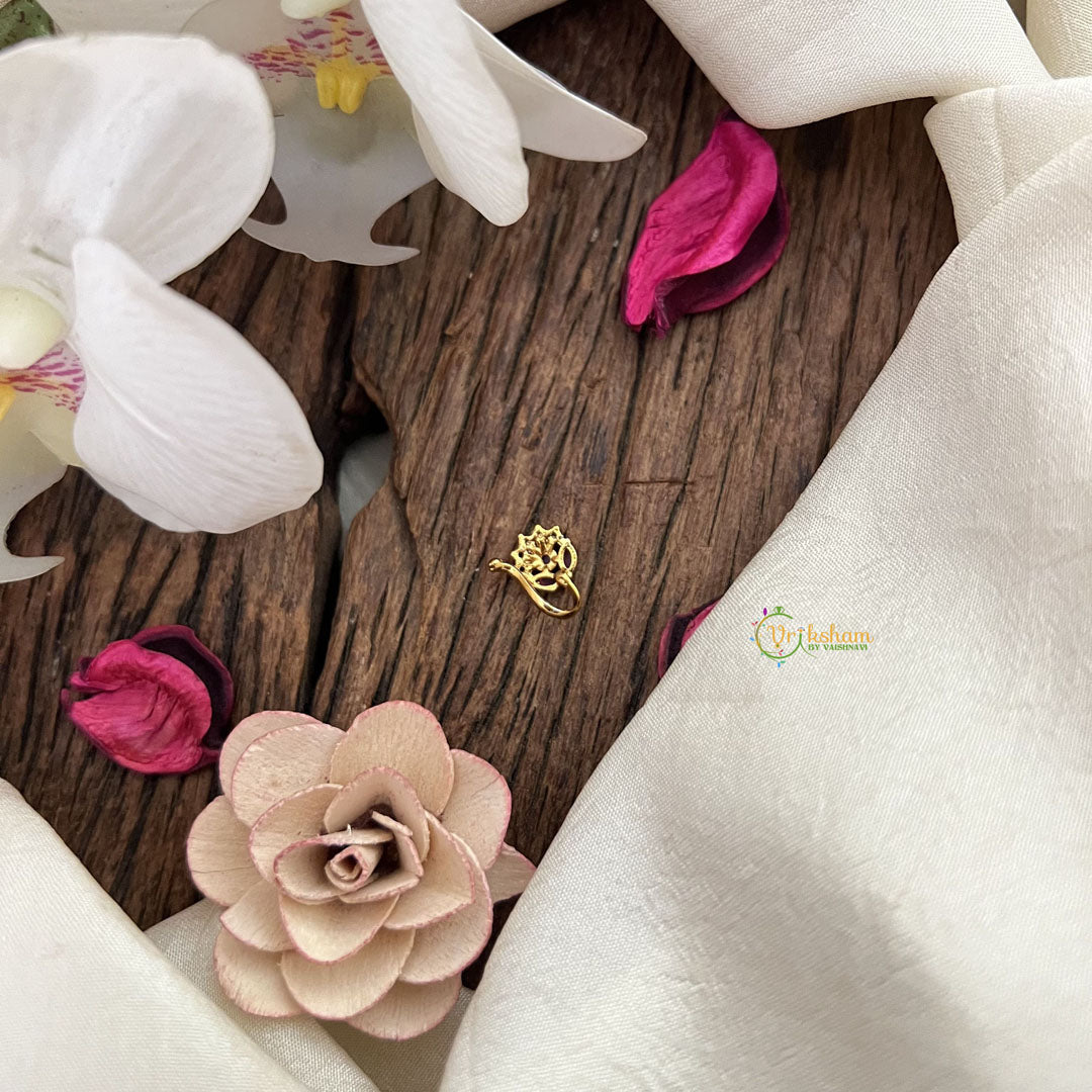 The Vriksham Designer Floral Golden Naths in vibrant red showcases intricate floral artistry crafted in a luxurious golden finish. This sophisticated nose pin adds a refined and elegant accent to traditional ensembles, perfect for enhancing your look with timeless beauty and grace on special occasions.