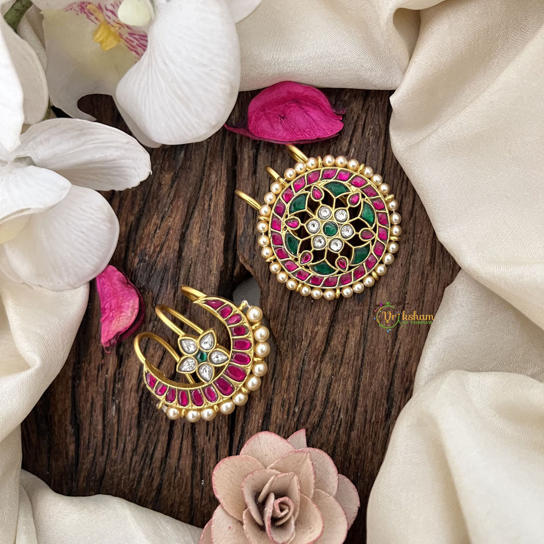 Elevate your elegance with the Vriksham Designer Floral Style Chandran & Suryan Billai-Pearl. This exquisite piece blends timeless floral motifs with lustrous pearls, creating a refined accessory perfect for special occasions. Its sophisticated design enhances any ensemble, offering a graceful touch that reflects both tradition and contemporary style.