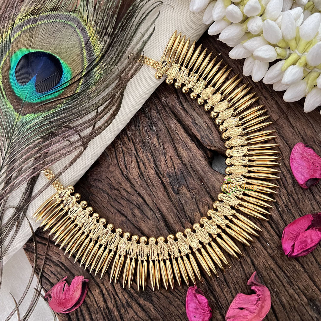 Indulge in luxury with our Vriksham Designer Gold Look Alike Mullai Mottu Short Neckpiece. Crafted with intricate details, this stunning piece exudes elegance and exclusivity. Elevate any outfit with this neckpiece, inspired by the world of art and fashion. Experience the beauty of fine craftsmanship and stand out from the crowd in style.