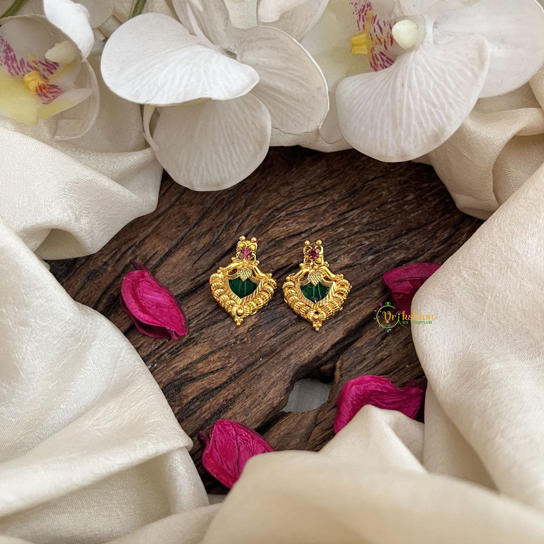 Elevate your elegance with the Vriksham Designer Gold Plated Kerala Palakka Stud Earrings. Featuring a refined blend of green and pink hues, these earrings showcase exquisite craftsmanship inspired by Kerala’s rich heritage. Their gold-plated finish adds a luxurious touch, making them perfect for both traditional and contemporary occasions. A sophisticated accessory that enhances your style with subtle charm and timeless beauty.