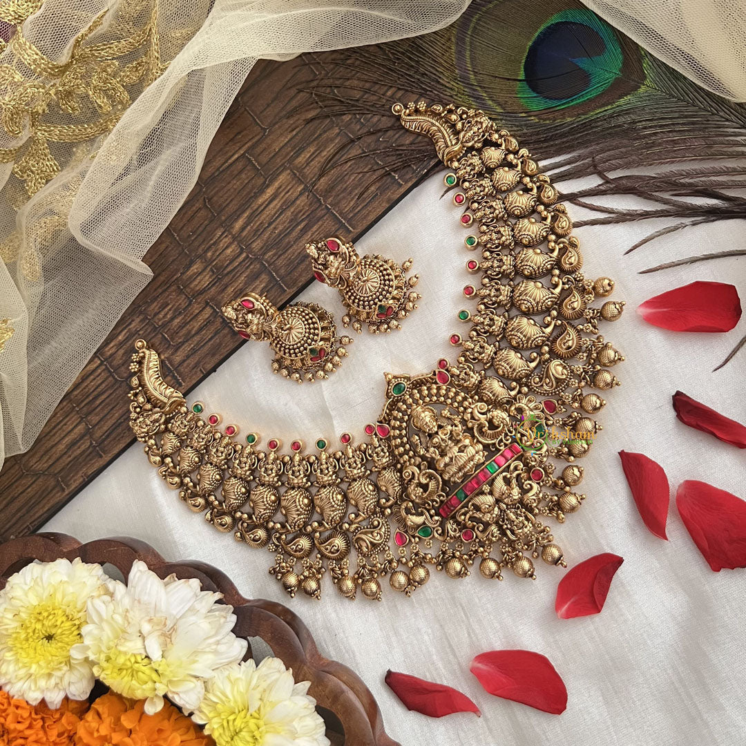 For more similar pieces visit; https://vrikshamindia.com/product-category/golden-jewellery/short-neckpieces/