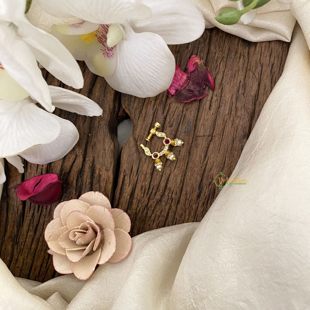 Elevate your style with Vriksham's Designer Golden Naths. Inspired by the beauty of nature, the bird-shaped nose pin in White Red adds a touch of sophistication to any look. Handcrafted to perfection, this exquisite piece will make you stand out and exude elegance.