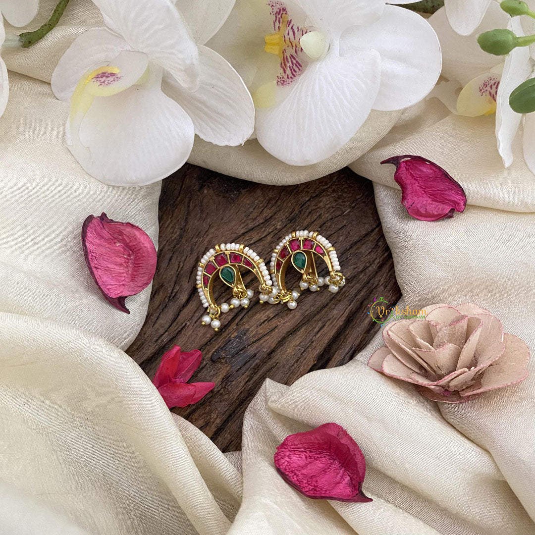 Embrace the bold elegance of the Vriksham Designer Half Moon Maharashtrian Style Press Bugadi-Pearl. Handcrafted with intricate details, the iconic design boasts a luxurious touch that will elevate any ensemble. Add a touch of Maharashtrian culture to your style with this statement piece.