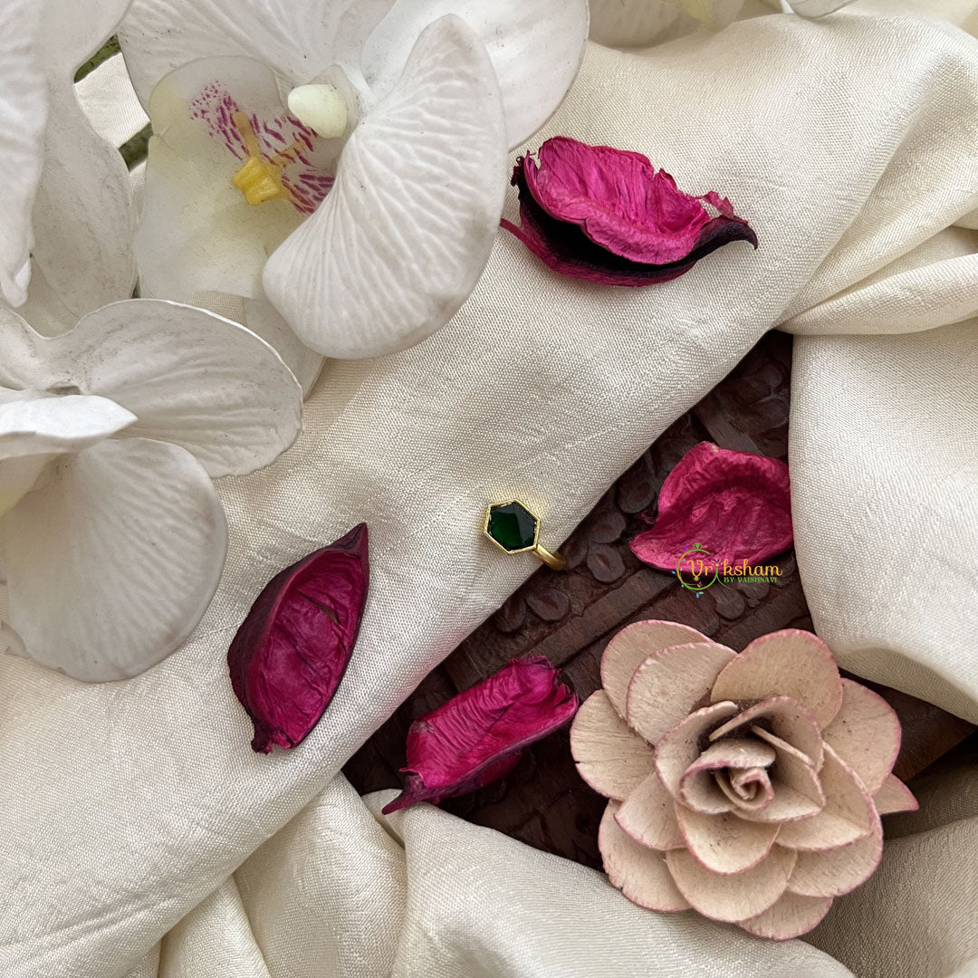 Elevate your elegance with the Vriksham Designer Hexagon Jadau Kundan Nath in a captivating green hue. This exquisite piece showcases intricate hexagonal craftsmanship combined with traditional Jadau and Kundan artistry, offering a timeless accessory that enhances any ensemble with refined sophistication. Perfect for special occasions, it brings a subtle yet striking charm to your look.