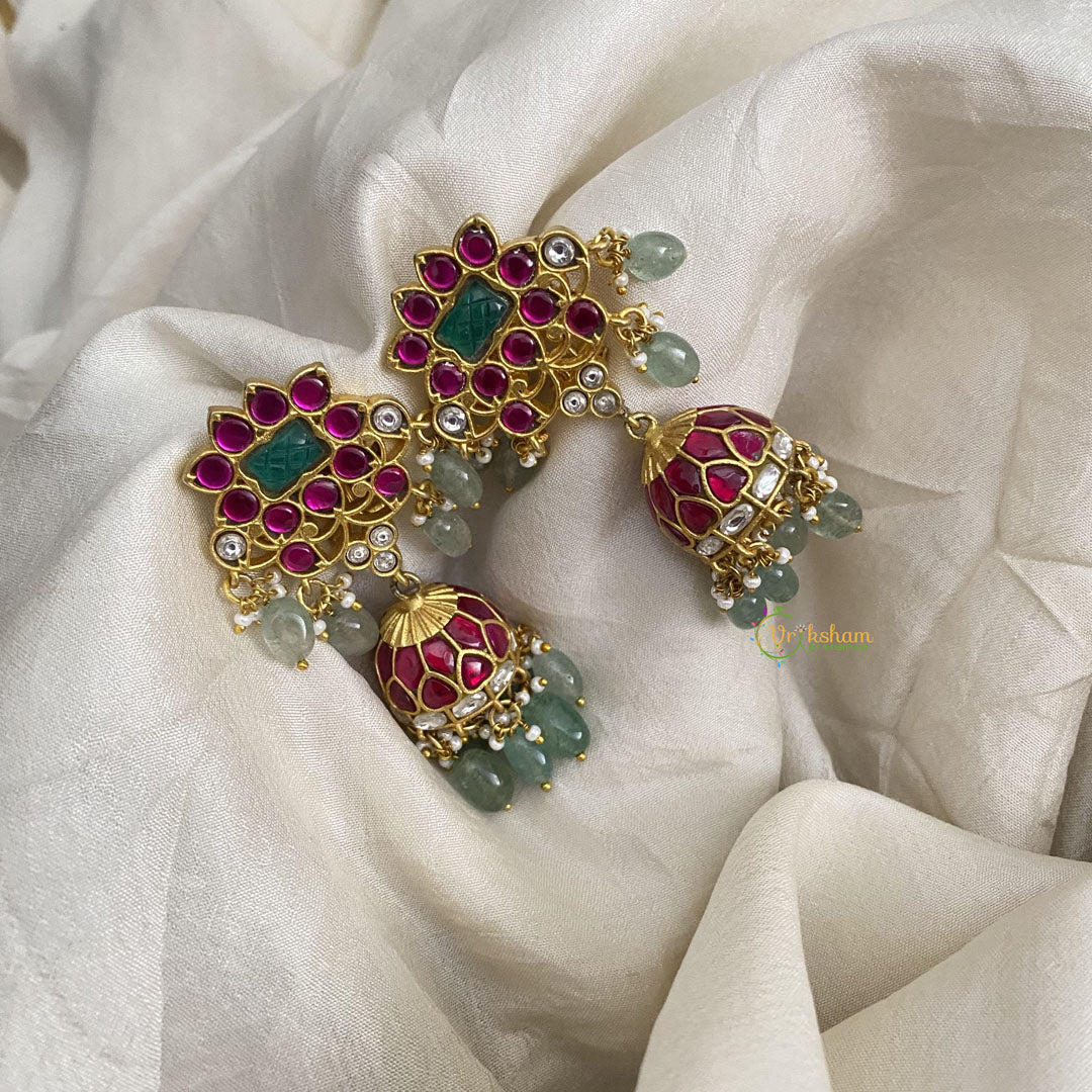 Introducing the Vriksham Designer Jadau Kundan Jhumka-Pastel Green Bead, the perfect blend of traditional and modern elements. Handcrafted with intricate kundan work and adorned with a pastel green bead, this piece is a symbol of elegance and sophistication. Elevate your style with this luxurious and exclusive jhumka.