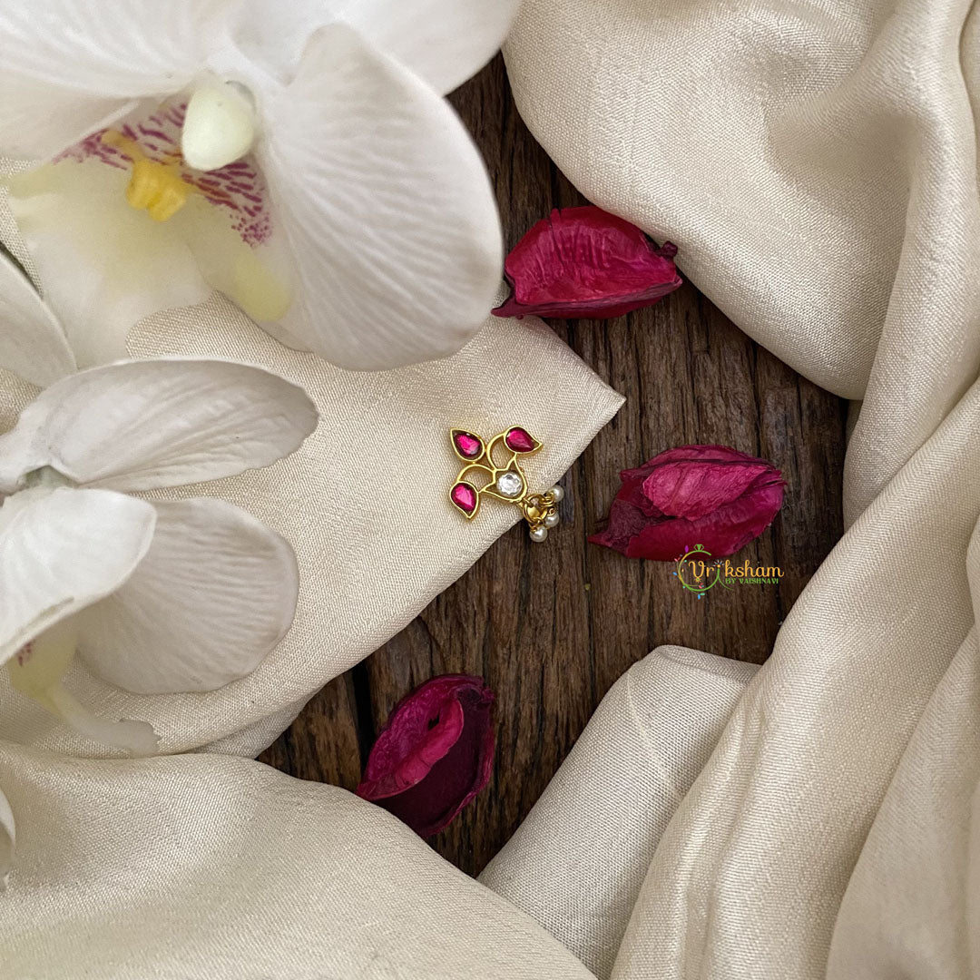 Enhance your elegance with the Vriksham Designer Jadau Kundan Stone Nath/Nose pin. Crafted with intricate details and adorned with sparkling stones, this piece exudes luxury and sophistication. Elevate your look and make a statement with this exquisite nose pin that is sure to catch everyone's attention.