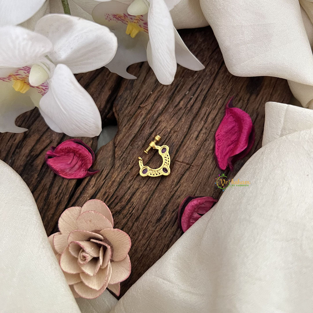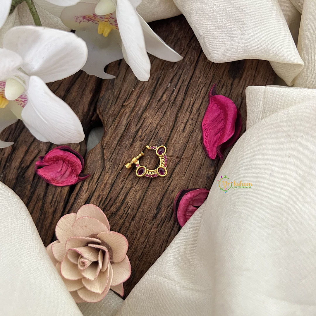 The Vriksham Designer Oval Naths features an elegant combination of red hues in a refined oval design. Expertly crafted, this nose pin blends traditional colors with contemporary sophistication, making it a timeless accessory that adds subtle charm and grace to any ensemble.