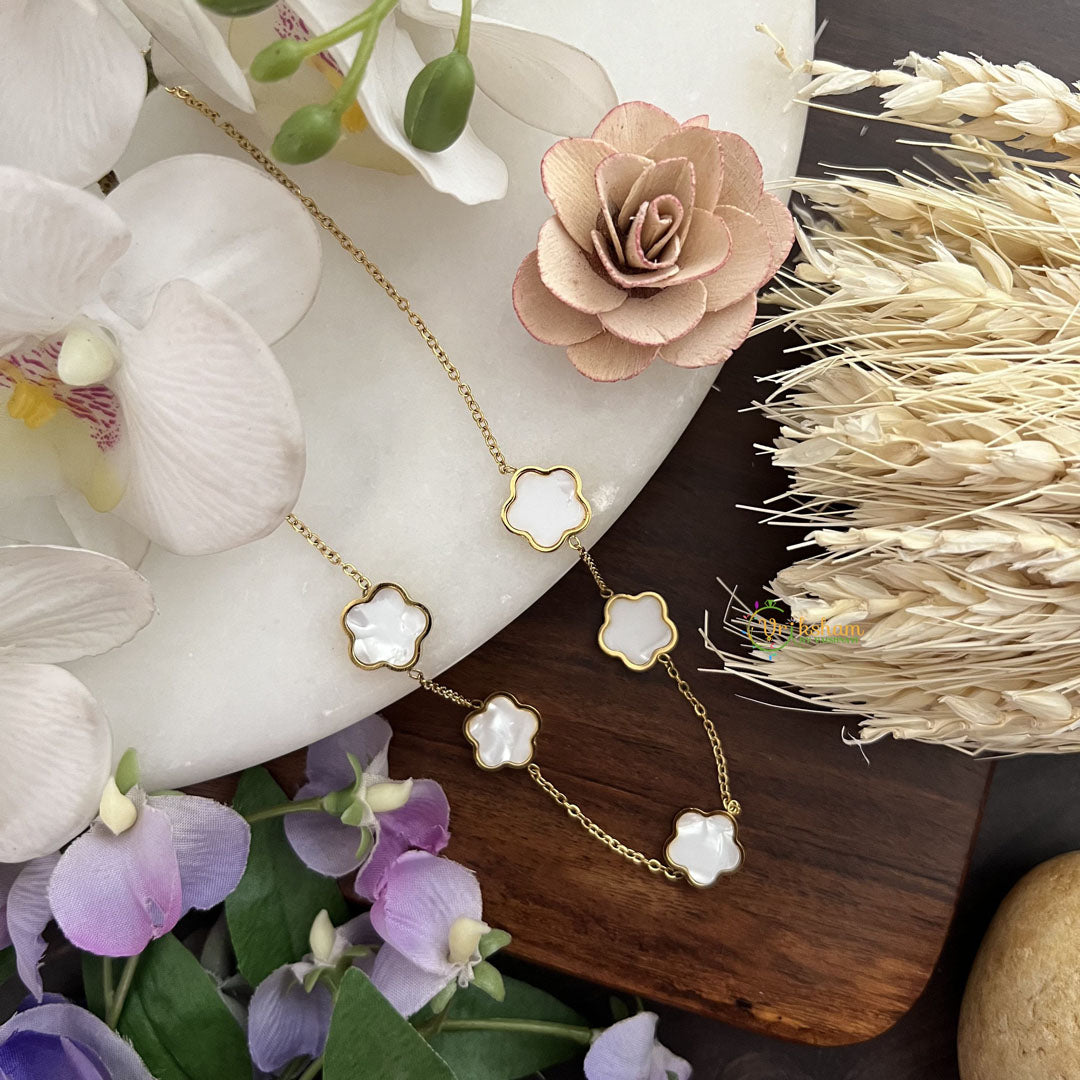 The Vriksham Designer Pendant Anti Tarnish Stainless Steel Necklace Chain-White is a luxurious and elegant piece that elevates any outfit. Made with high-quality stainless steel, this necklace chain boasts an anti-tarnish feature, ensuring its lasting beauty. Complete your look with this sophisticated and exclusive pendant.