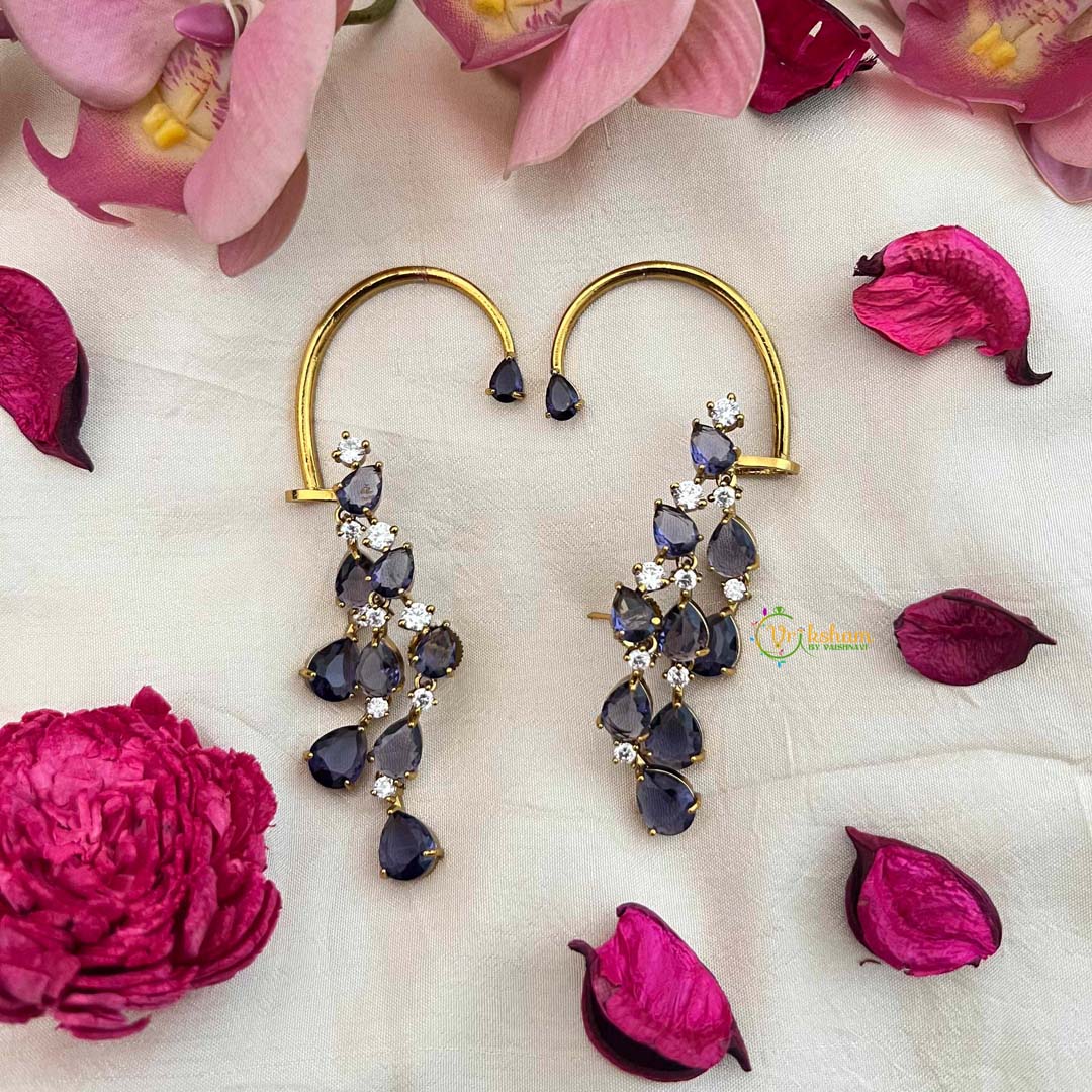 Elevate your jewelry collection with this exquisite designer piece featuring cascading purple gemstones that capture light with mesmerizing brilliance. The sophisticated dual-design combines a statement ear cuff with delicate stud earrings, offering versatile styling for both everyday elegance and special occasions. Crafted with meticulous attention to detail, the rich purple hues add a luxurious touch to any ensemble. Perfect for those who appreciate fine jewelry that seamlessly transitions from professional settings to evening wear. A timeless investment piece that celebrates refined taste and distinctive style.