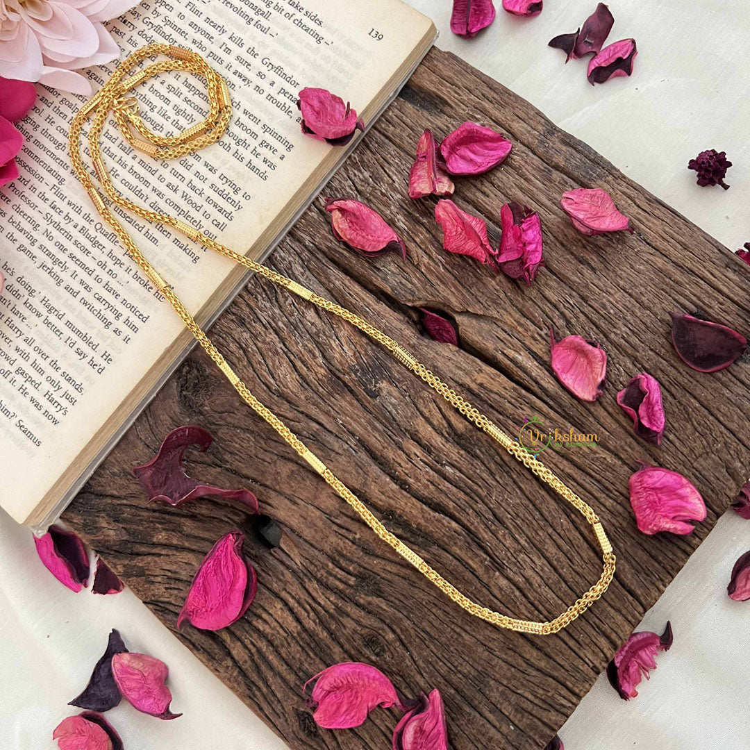 The Vriksham Designer Square Box Style Daily Wear Chain, measuring 30 inches, features a sleek geometric design that adds a modern touch to your everyday look. With its precise square box links and refined finish, this chain delivers both durability and sophisticated style for daily wear.