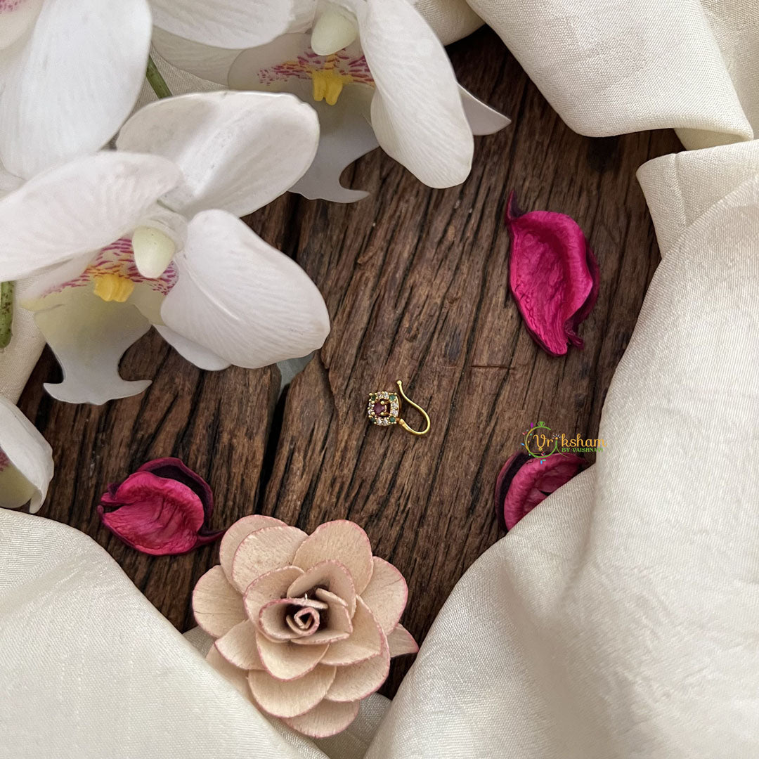 The Vriksham Designer Square Golden Naths features a striking combination of red, white, and green accents set within a refined square design. Crafted with meticulous attention to detail, this elegant nose pin adds a vibrant yet sophisticated touch to traditional ensembles, perfect for elevating your look with timeless grace.