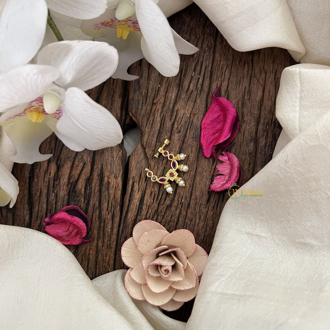 Elevate your elegance with the Vriksham Designer Square Nose Pin featuring a striking red pearl centerpiece. This finely crafted accessory blends traditional charm with contemporary design, perfect for adding a subtle yet sophisticated touch to any look. Its unique square shape and vibrant hue make it an exquisite choice for those who appreciate refined, distinctive jewelry.