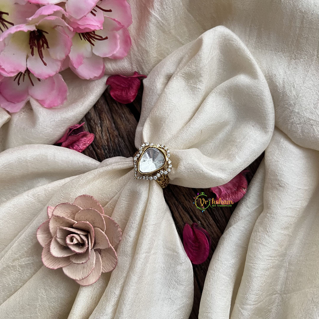 The Vriksham Designer Tilak Shape Mossanite Stone Finger Ring showcases a distinctive tilak-shaped mossanite stone set within an elegant, expertly crafted design. This sophisticated piece balances cultural significance with refined artistry, making it a captivating accessory for those who value unique elegance.