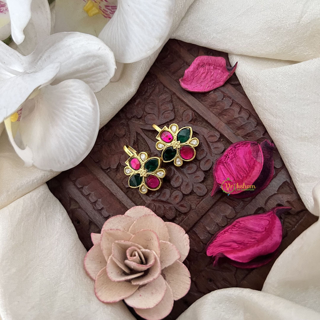 The Vriksham Dewdrop Glam Kundan Jadau Press Bugadi in red, green, and white combines delicate dewdrop-inspired design with intricate kundan and jadau craftsmanship. This elegant accessory adds a sophisticated sparkle to traditional attire, perfect for enhancing your look at festive and formal occasions with timeless beauty.