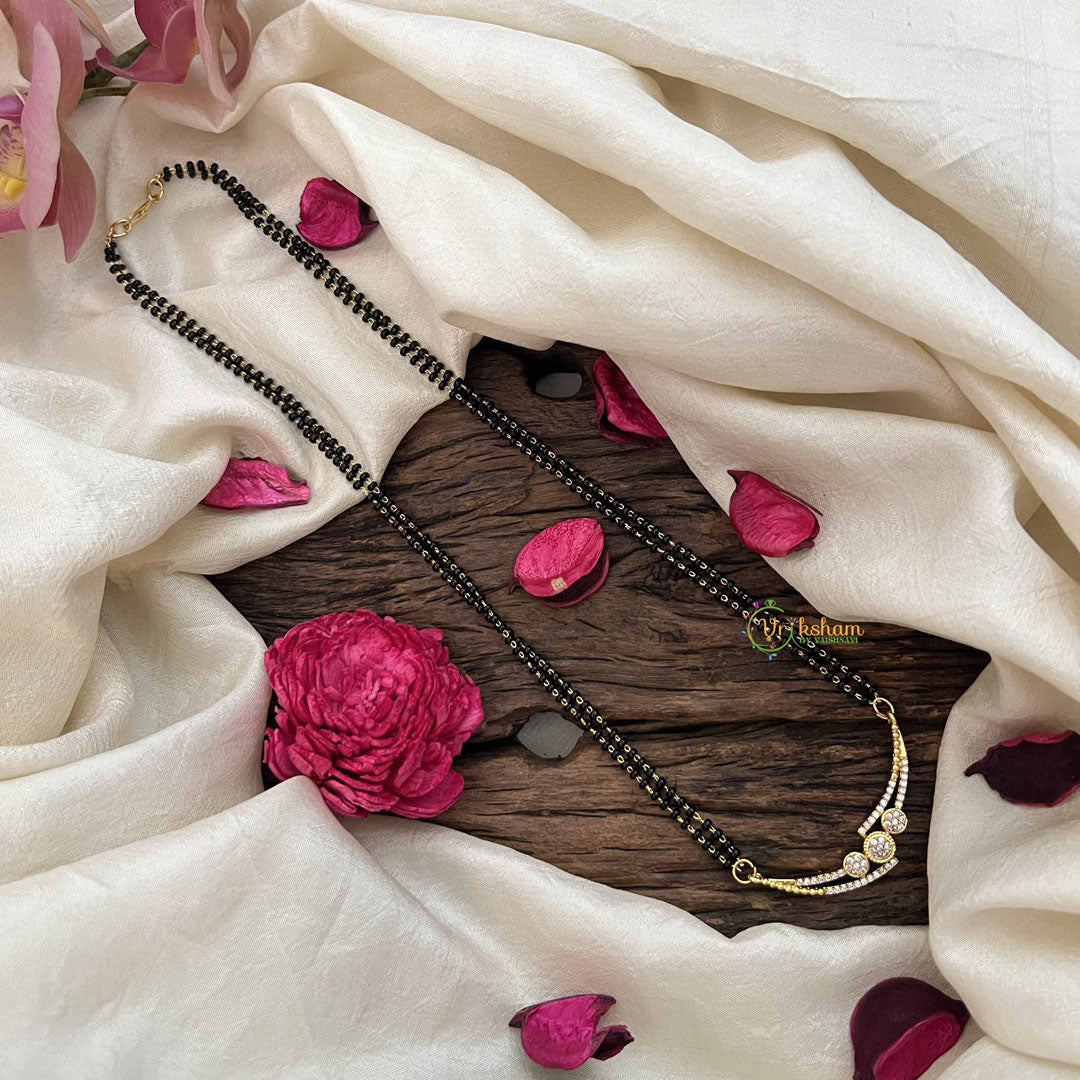 The Vriksham Divine Spark Round Modern AD Stone Mangalsutra features a contemporary round design accented with radiant AD stones, delivering a refined sparkle. This modern interpretation of a classic symbol offers a perfect balance of tradition and style, making it an elegant choice for women who appreciate subtle sophistication in their jewelry.