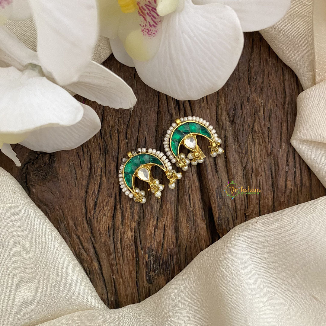 Introducing the Vriksham Diya Shape Maharashtrian Style Press Bugadi-Green, a stunning piece of art inspired by traditional jewelry. Hand-crafted with intricate details and adorned with a vibrant red hue, this bugadi adds a touch of elegance to your look. Elevate your style with this exclusive and luxurious accessory.