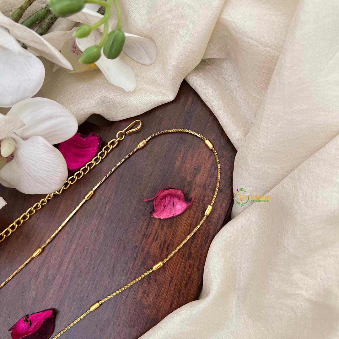 Elevate your saree ensemble with this exquisite dot-style hip chain, meticulously crafted in lustrous gold plating. Designed to drape gracefully along your waist, this accessory adds a touch of refined elegance to traditional attire. The delicate dot pattern creates visual interest while maintaining understated sophistication. Perfect for weddings, festivals, or special occasions, this hip chain complements both classic and contemporary saree styles. A timeless piece that transforms your look with subtle glamour and cultural charm.
