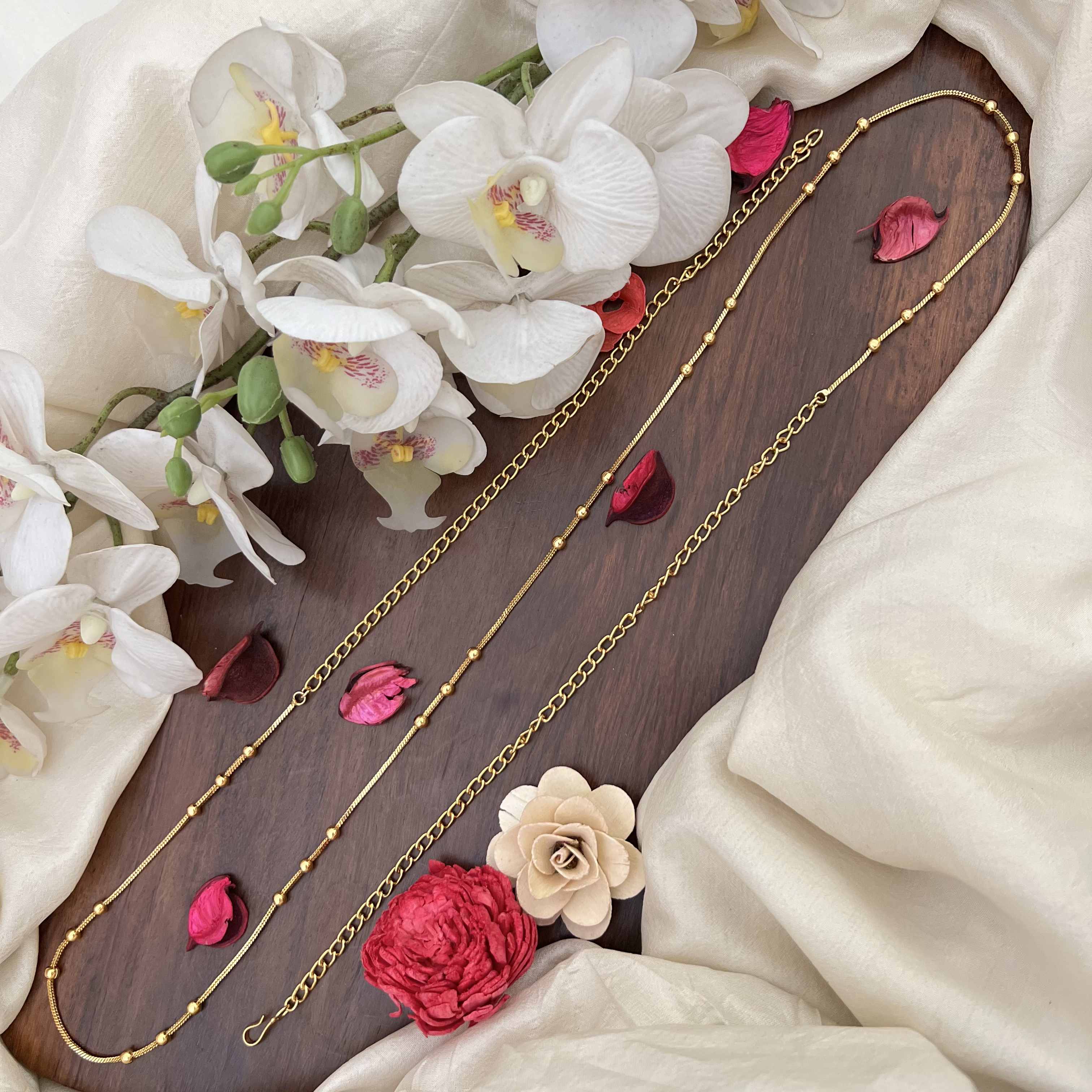Adorn yourself with this stunning board leaf hip chain, featuring intricate gold plating that captures light with every movement. The leaf motif brings natural elegance to your saree, creating a harmonious blend of botanical inspiration and refined craftsmanship. This versatile accessory drapes beautifully along the hips, enhancing traditional silhouettes with understated luxury. Ideal for festive celebrations, weddings, and cultural events, it pairs seamlessly with various saree styles. An investment piece that celebrates timeless beauty and adds a distinctive touch of sophistication to your ethnic wardrobe.