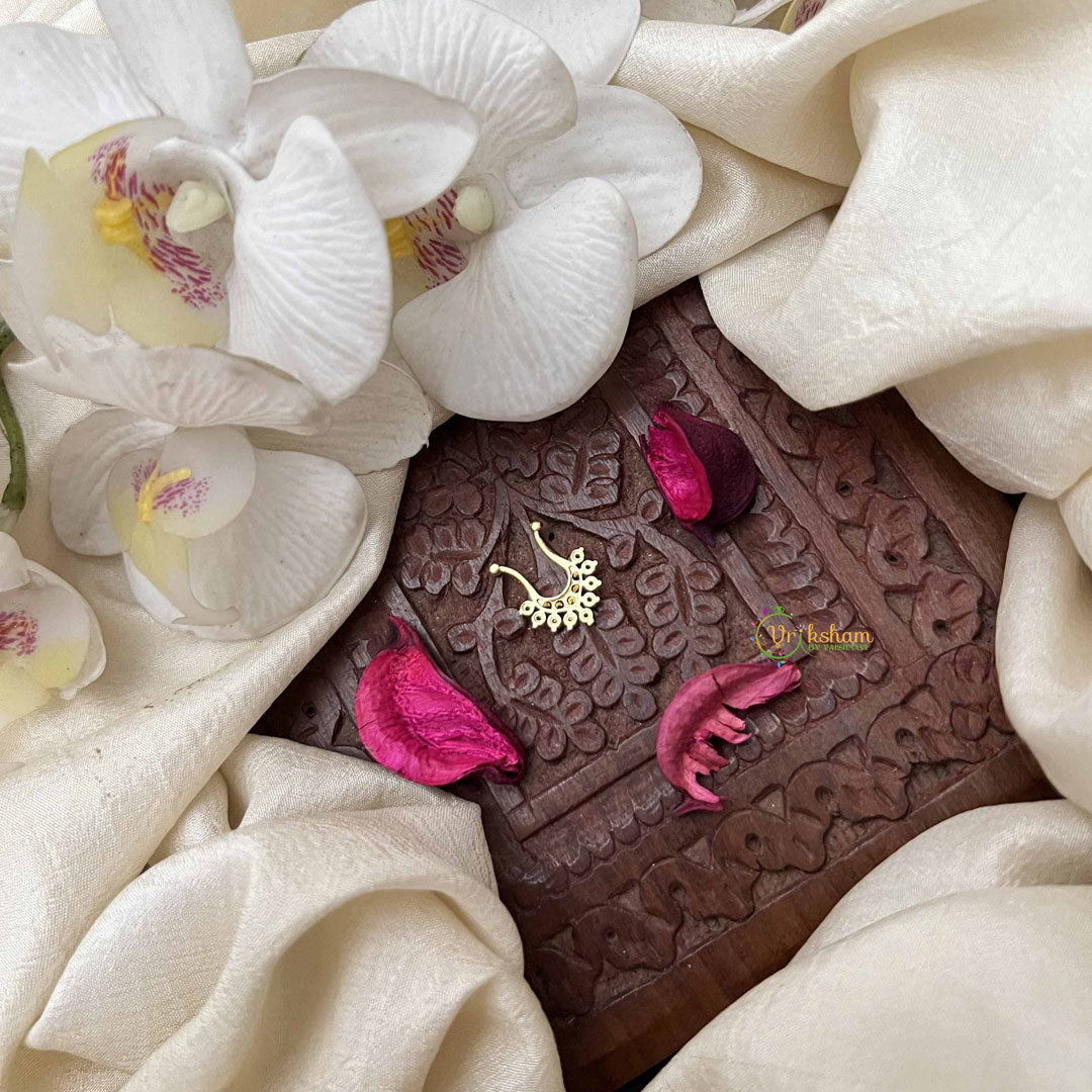 Golden Naths/Nose ring for Non - Pierced Nose. People who do not have piercing do not have to worry about not being able to wear naths. These nose rings helps people with non pierced nose also wear the same with a screw like holding. The moment you see the nath you will be able to understand how it will sit on the nose.