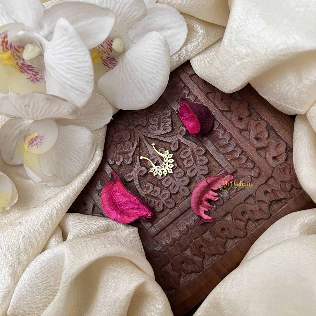 Golden Naths/Nose ring for Non - Pierced Nose. People who do not have piercing do not have to worry about not being able to wear naths. These nose rings helps people with non pierced nose also wear the same with a screw like holding. The moment you see the nath you will be able to understand how it will sit on the nose.