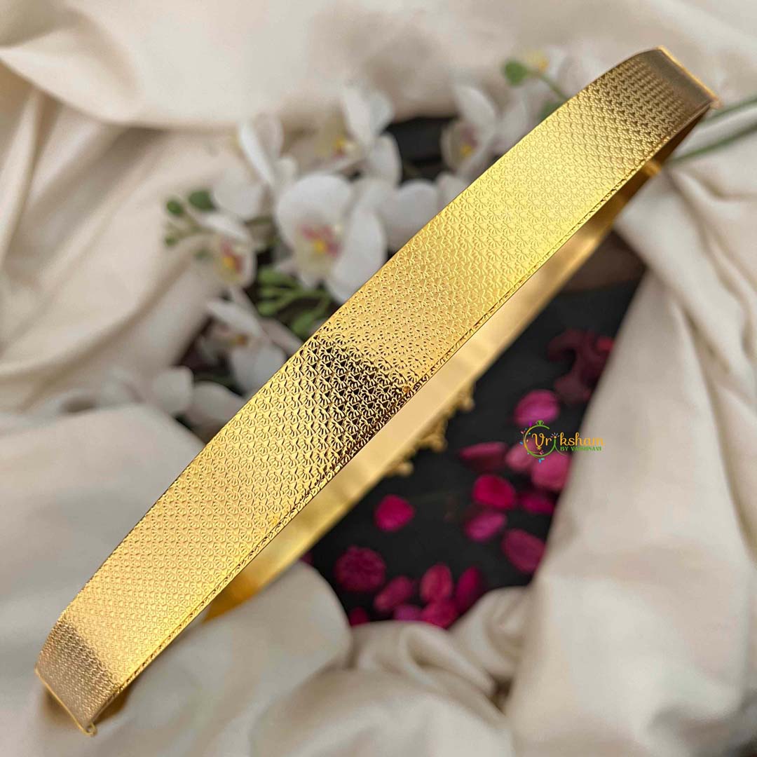 Vriksham Dual Peacock With Lakshmi Texture Design Plain Hipbelt-Gold Bead-G21193