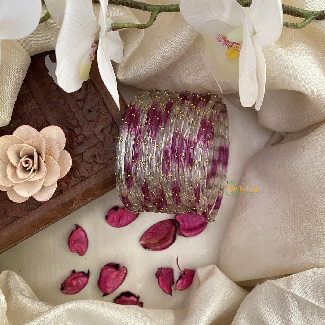 Enhance your wrists with these exquisite Off White & Pink Color Glass Bangles. This set of 12 is crafted with premium glass, offering a lightweight and elegant feel. The bangles add a touch of luxury with their thin design, perfect for any occasion. Elevate your style with this stunning collection.