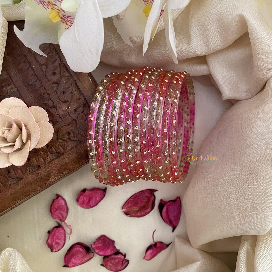 Indulge in luxury and sophistication with Vriksham's Dual Tone Moon Type Glass Bangles. This set of 12 features a stunning combination of off-white and pink, adding a touch of elegance to any outfit. Carefully crafted with premium glass, these bangles exude exclusivity and refinement.