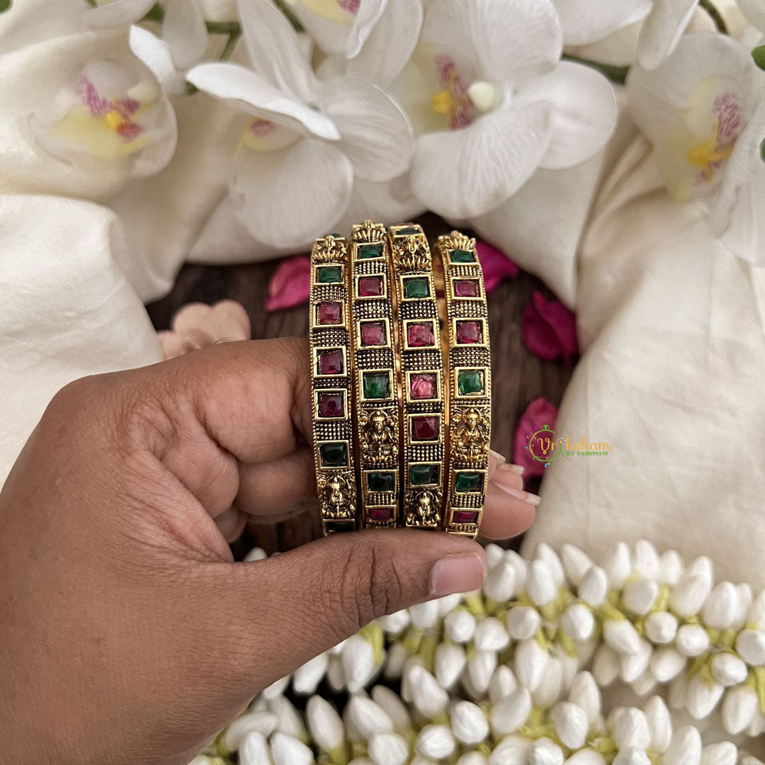 Elevate your elegance with the Vriksham Dual Tone Ruby & Emerald Stone Bangles set. Featuring four exquisitely crafted bangles blending warm ruby and vibrant emerald stones, this set offers a refined balance of color and design. Perfect for adding a touch of sophistication to both traditional and contemporary ensembles, these bangles are an ideal accessory to enhance your style with subtle luxury.