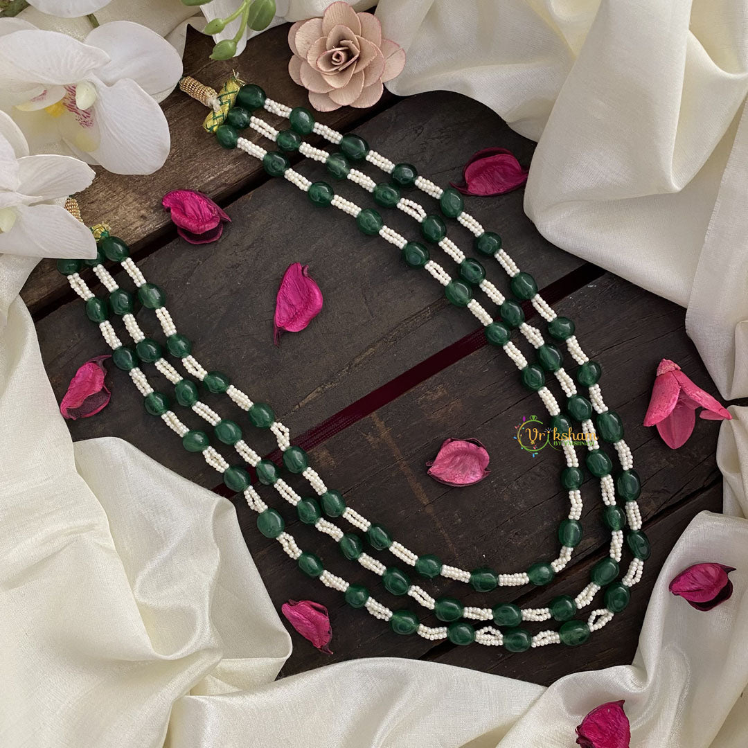 Indulge in luxury with the Vriksham Elegant 3 Layer Green Beaded Mala. Crafted with exquisite green beads, this mala exudes sophistication and elegance. Elevate any outfit with its three layers and add a touch of exclusivity to your style. Own a piece of art, perfect for any occasion.