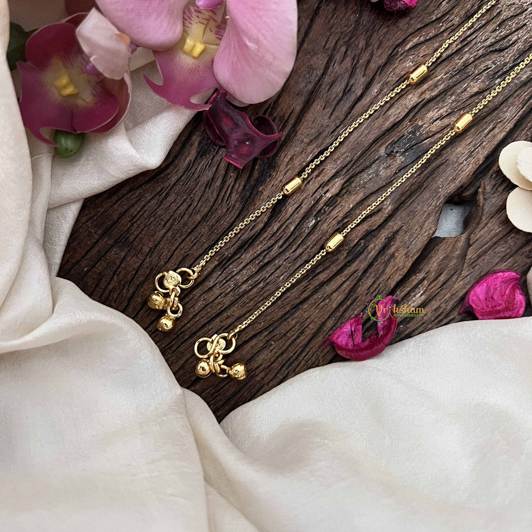 Elevate your ensemble with Vriksham’s Elegant Ball Gold Look Alike Anklets. Featuring delicately designed ball accents, these anklets bring understated luxury and timeless elegance to your look. Their refined gold-inspired finish ensures they complement both casual and formal styles effortlessly.