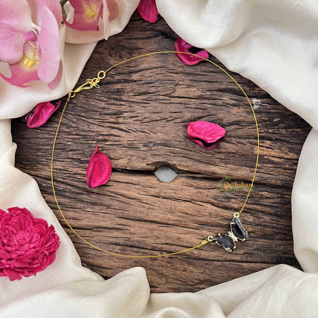 The Vriksham Elegant Butterfly Pendant in purple features exquisite detailing on a delicate invisible chain, blending subtle artistry with refined elegance. This sophisticated accessory adds a graceful pop of color to enhance any ensemble with timeless charm.