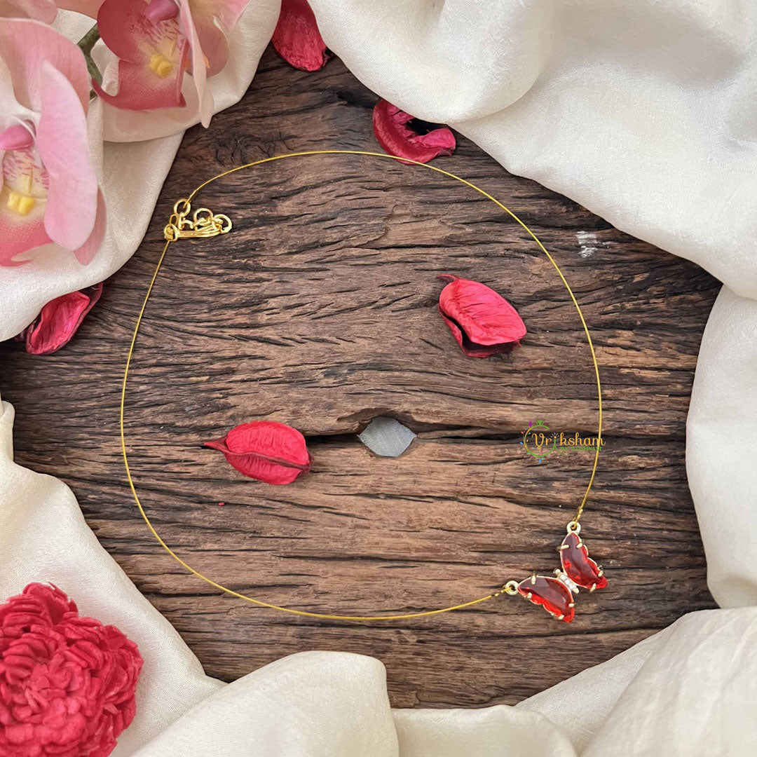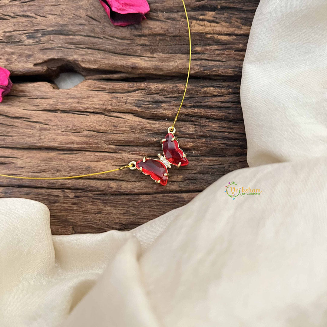 Vriksham Elegant Butterfly Pendant Invisible Chain-Red-G20589
