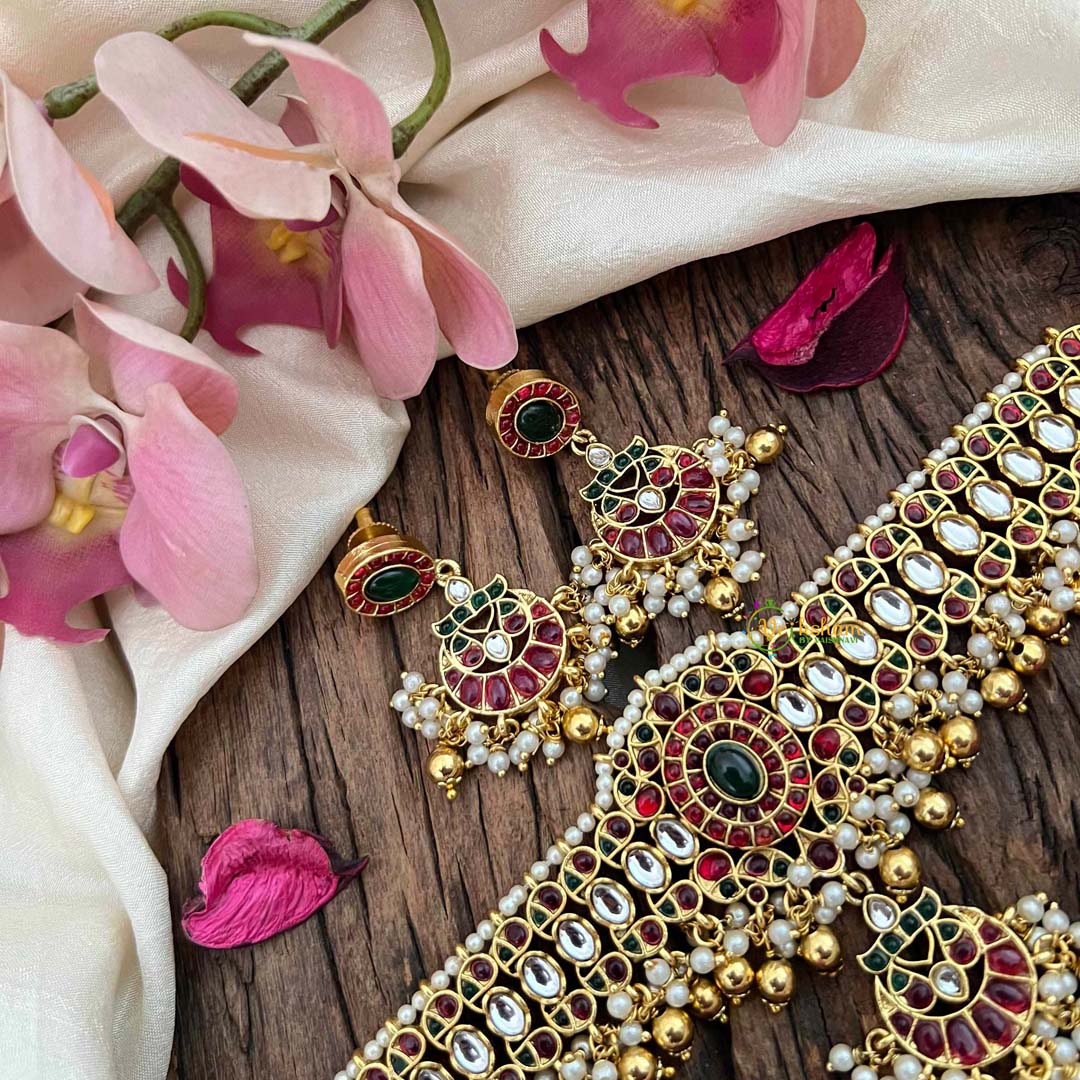 Premium AD Stone Short Neckpiece- premium quality polish and imitation stones neckpiece, comes with matching earrings.