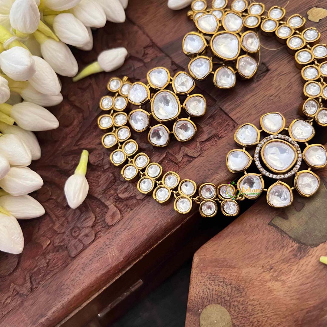 Discover ethereal beauty with this Elegant Crystal White Floral Short Neckpiece, a luminous creation that captures the essence of delicate refinement. Pristine crystal elements intertwine with intricate floral motifs, creating a harmonious composition that radiates understated opulence. The short length offers versatile styling possibilities, gracefully complementing both traditional and contemporary wardrobes with effortless sophistication. Each detail has been thoughtfully crafted to evoke timeless elegance, making this neckpiece an ideal choice for those who appreciate jewelry that whispers rather than proclaims—perfect for intimate gatherings, festive occasions, or elevating your everyday aesthetic with quiet luxury.