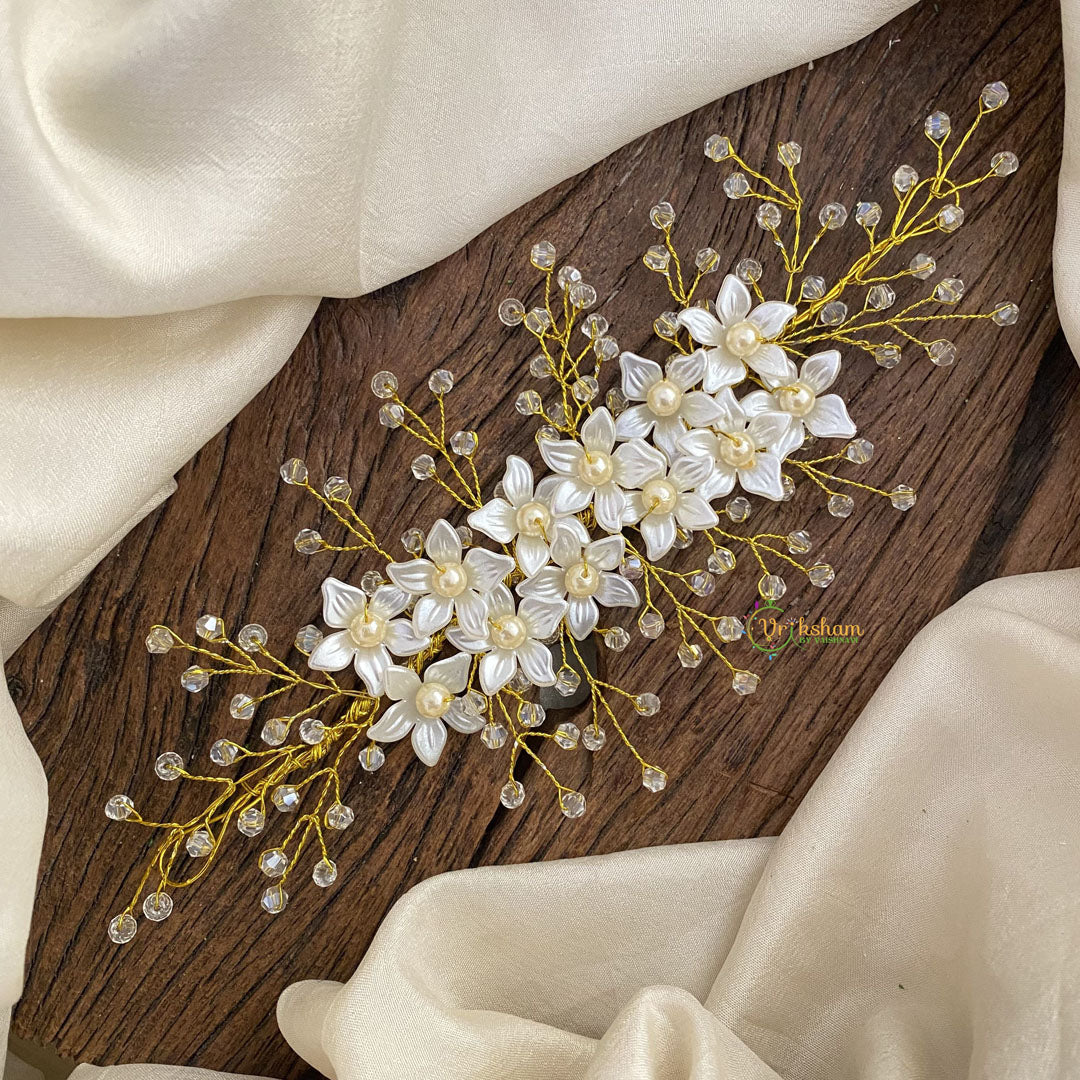 Introducing the Vriksham Elegant Floral Beaded Bun Juda Bridal Brooch, the perfect accessory to elevate your hairstyle and add a touch of luxury to any special occasion. Handcrafted with intricate floral beading, this brooch is a beautiful addition to your bridal look or any elegant hairstyle.