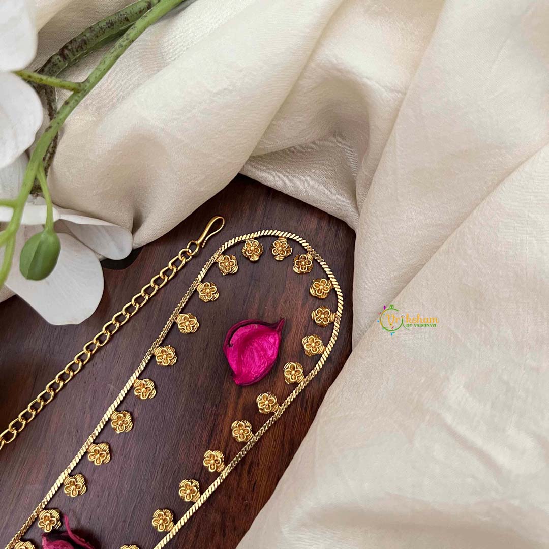Discover timeless grace with this Elegant Floral Round Champ hip chain, adorned with delicate botanical motifs and finished in radiant gold. Each intricately designed floral element catches the light beautifully, creating an enchanting shimmer against your silhouette. The round champ detailing enhances the piece's refined aesthetic, making it a versatile accessory for both intimate gatherings and grand celebrations. Drape it effortlessly around your hips to add a touch of botanical elegance to your wardrobe. A sophisticated choice for those who appreciate artisanal craftsmanship and timeless beauty.