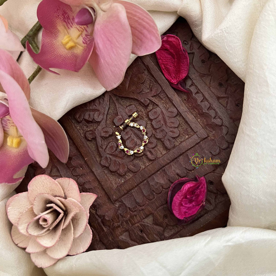 The Vriksham Elegant Floral Style Press Nose Pin in white and red features delicate floral motifs blended seamlessly with a convenient press-fit design. This refined accessory brings a touch of sophistication and charm to your ensemble, making it an ideal choice for both everyday elegance and special occasions.