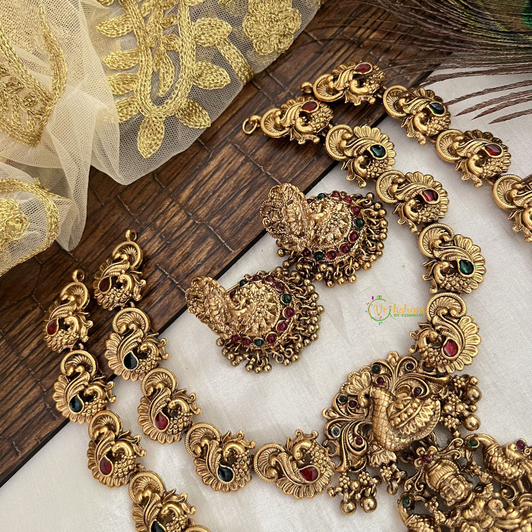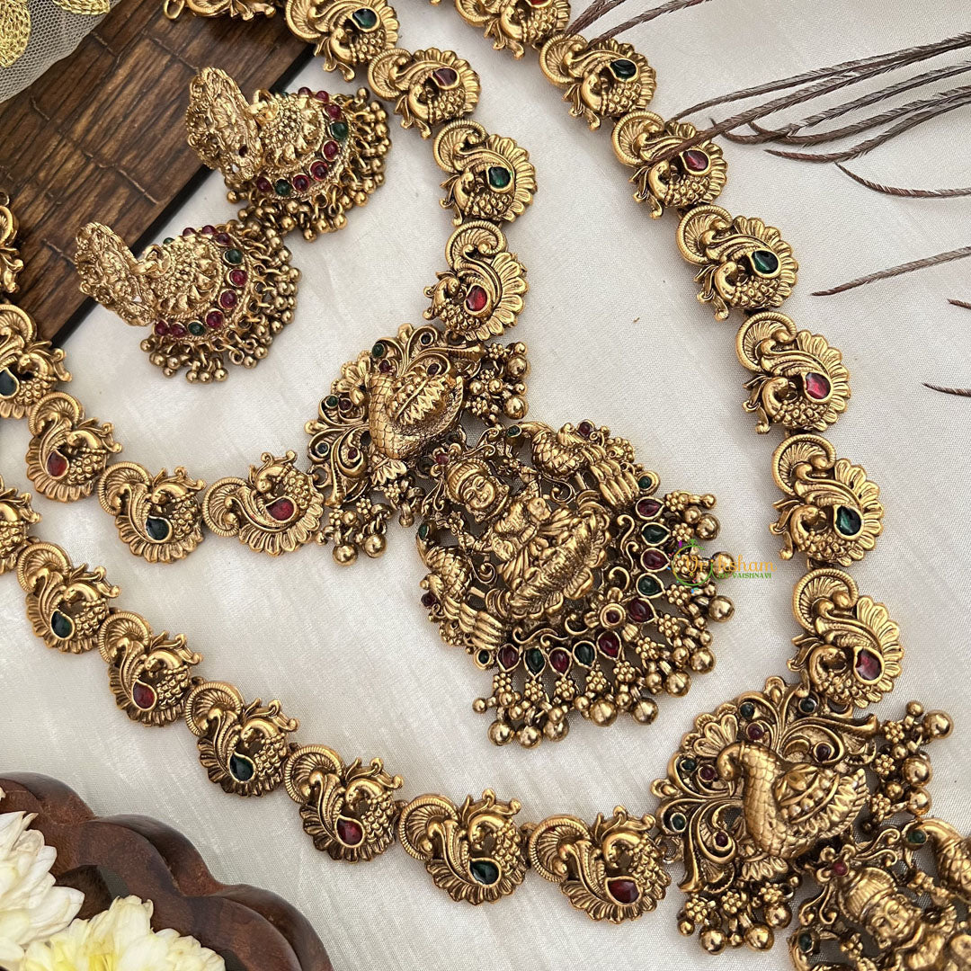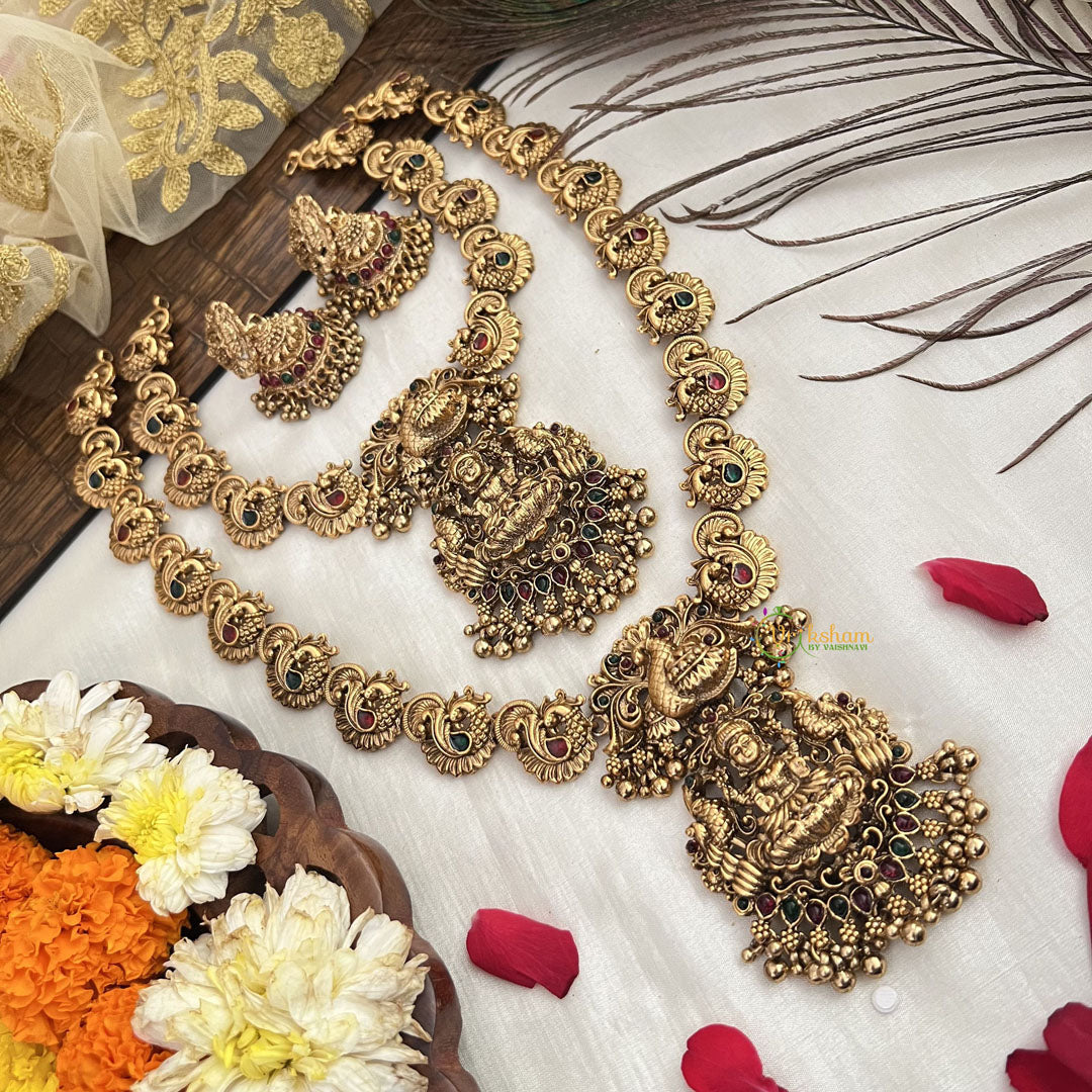 Vriksham Elegant Gold Plated Lakshmi With Peacock Bridal Set-Gold Bead-G19185