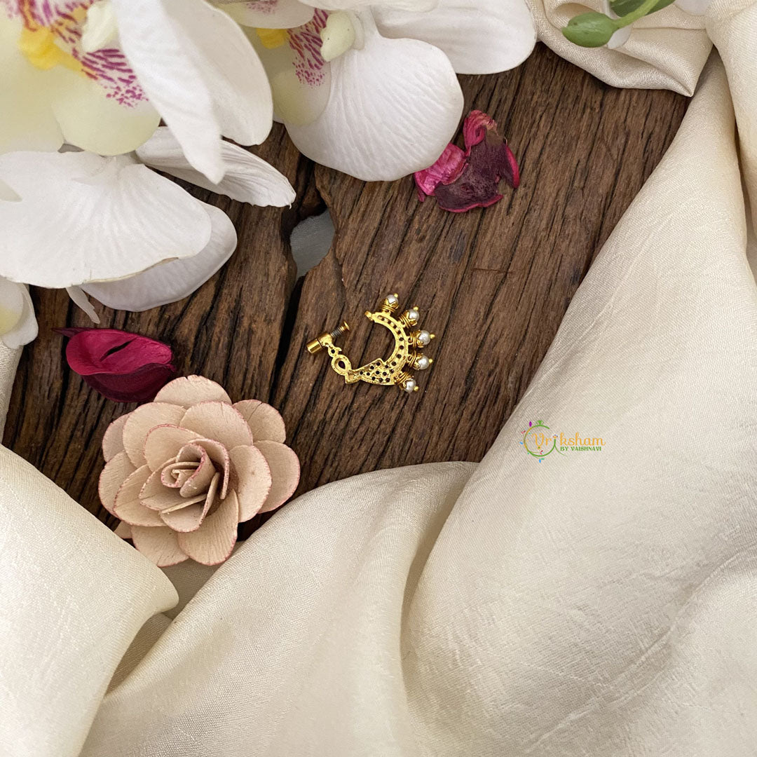 Introducing the Vriksham Elegant Golden Naths, also known as Nose pin in Red Green & White. Enhance your beauty with these luxurious, handcrafted pieces that compliment any attire. A perfect blend of traditional and modern elements, this accessory is a must-have for any fashion-forward individual.