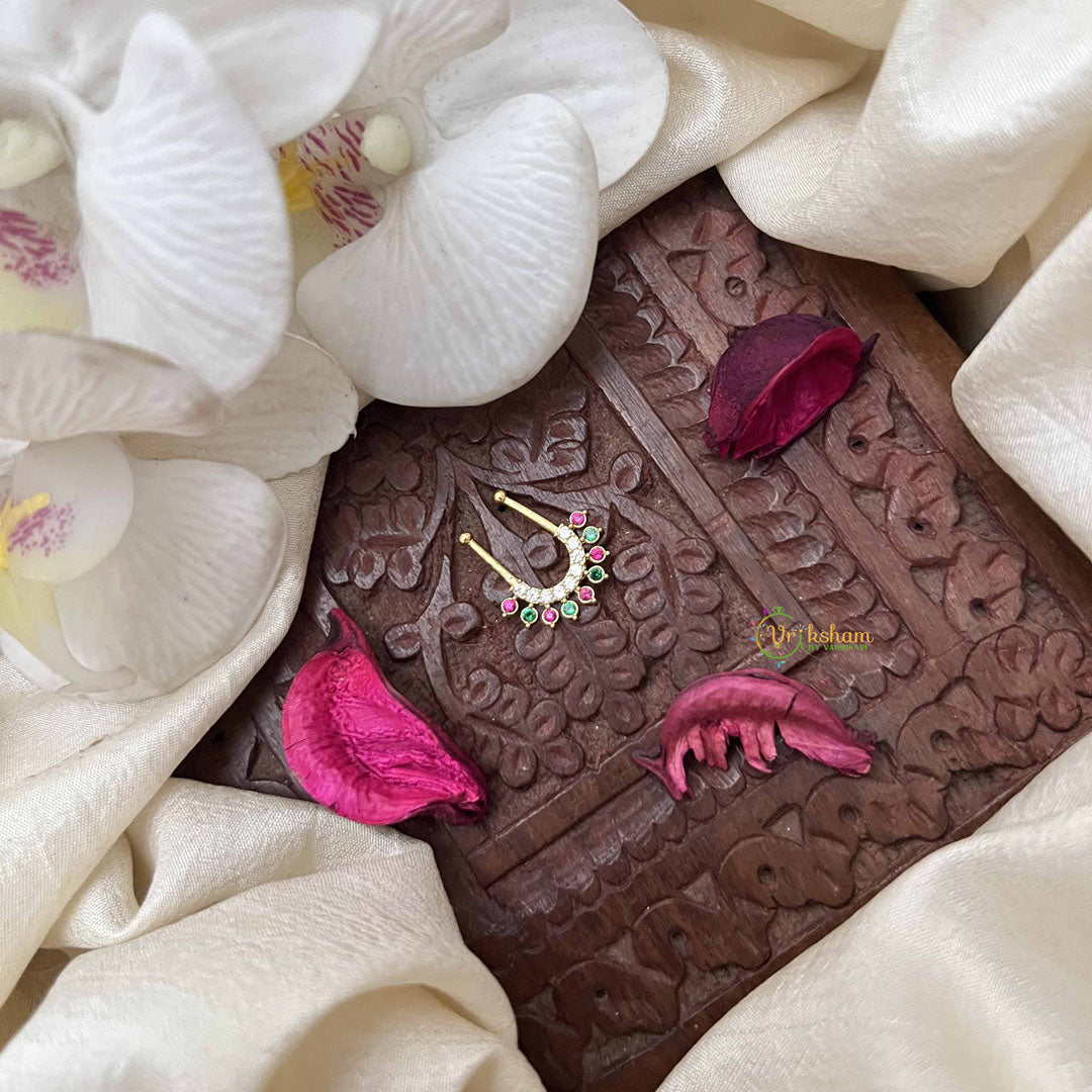 Vriksham Elegant Half Circle Leaf Septum Ring-Green White & Red-G21130
