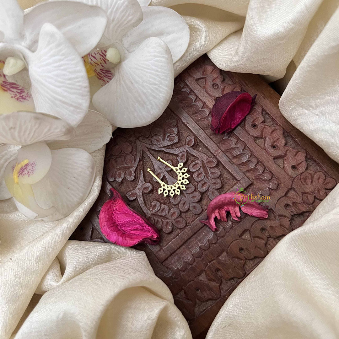 Golden Naths/Nose ring for Non - Pierced Nose. People who do not have piercing do not have to worry about not being able to wear naths. These nose rings helps people with non pierced nose also wear the same with a screw like holding. The moment you see the nath you will be able to understand how it will sit on the nose.