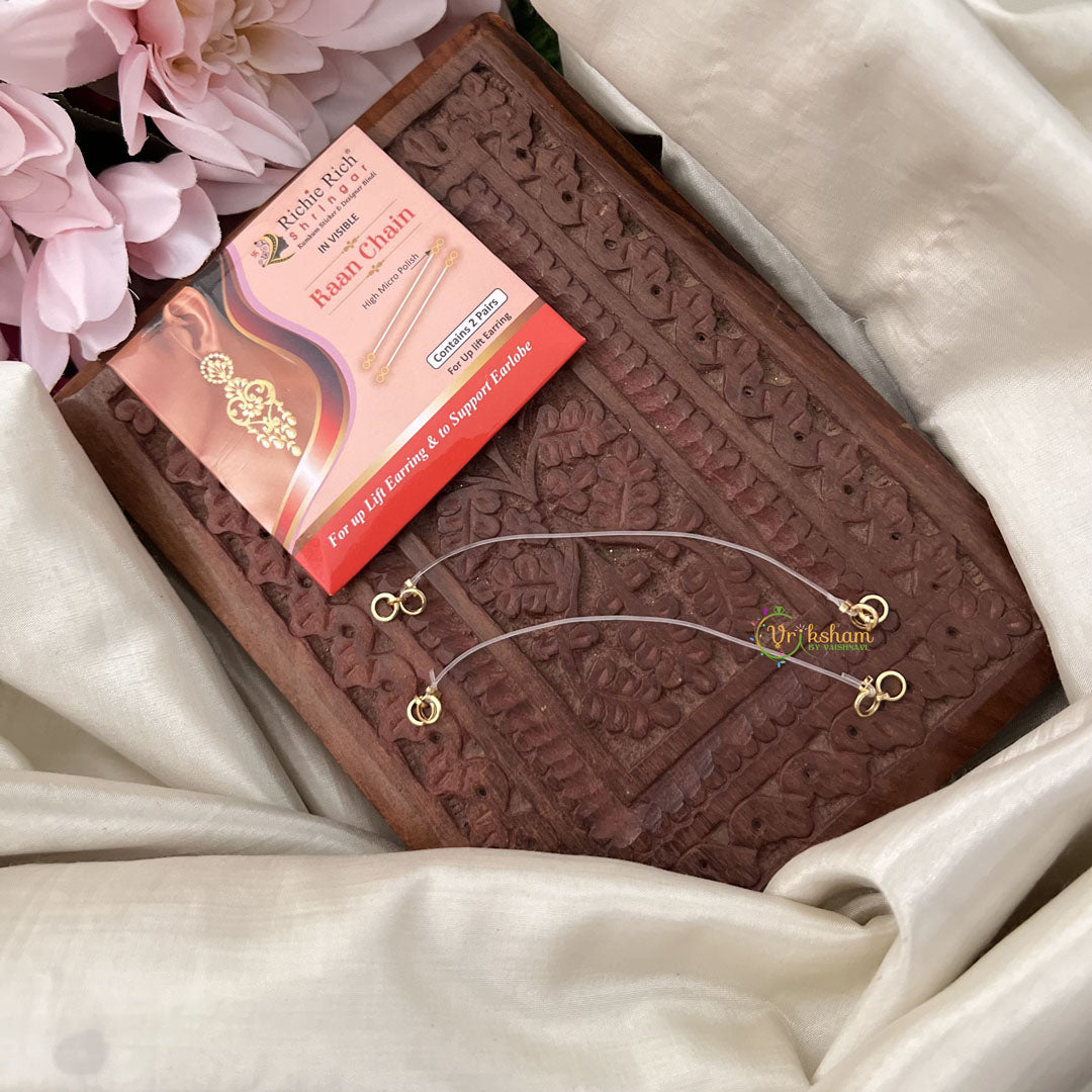 Elevate your earring style with Vriksham Elegant Invisible Ear Chains, crafted to subtly enhance your look without overpowering it. This set contains two pairs of delicate, nearly invisible chains that add a refined touch of sophistication while securing your earrings comfortably in place. Designed for effortless elegance, these ear chains blend seamlessly with any outfit, perfect for those who appreciate understated luxury and reliable wear.