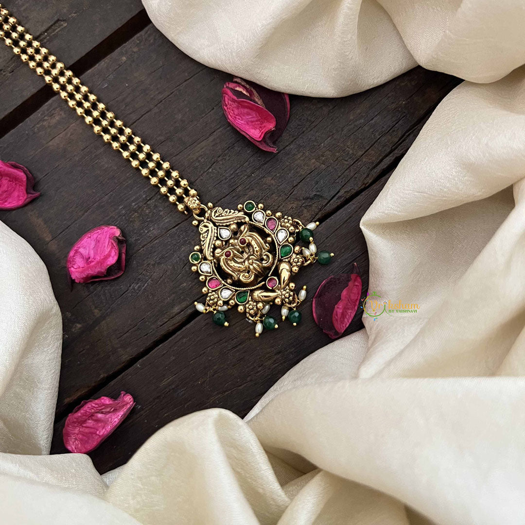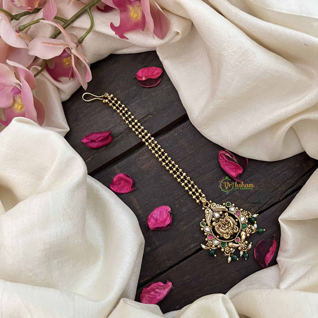 Adorn your forehead with this exquisite maang tikka, a quintessential piece of South Indian bridal jewelry that epitomizes refined elegance. Featuring an enchanting peacock design embellished with delicate golden dots, this 1 gram gold maang tikka captures the essence of traditional craftsmanship. The intricate detailing creates a luminous effect that frames the face beautifully, adding a touch of divine grace to your appearance. Perfect for weddings, festivals, and auspicious occasions, this maang tikka symbolizes marital bliss and cultural heritage. The sophisticated peacock motif, rendered with meticulous precision, makes this piece a timeless treasure that celebrates the artistry of authentic temple jewelry, elevating your bridal ensemble with understated opulence and spiritual significance.