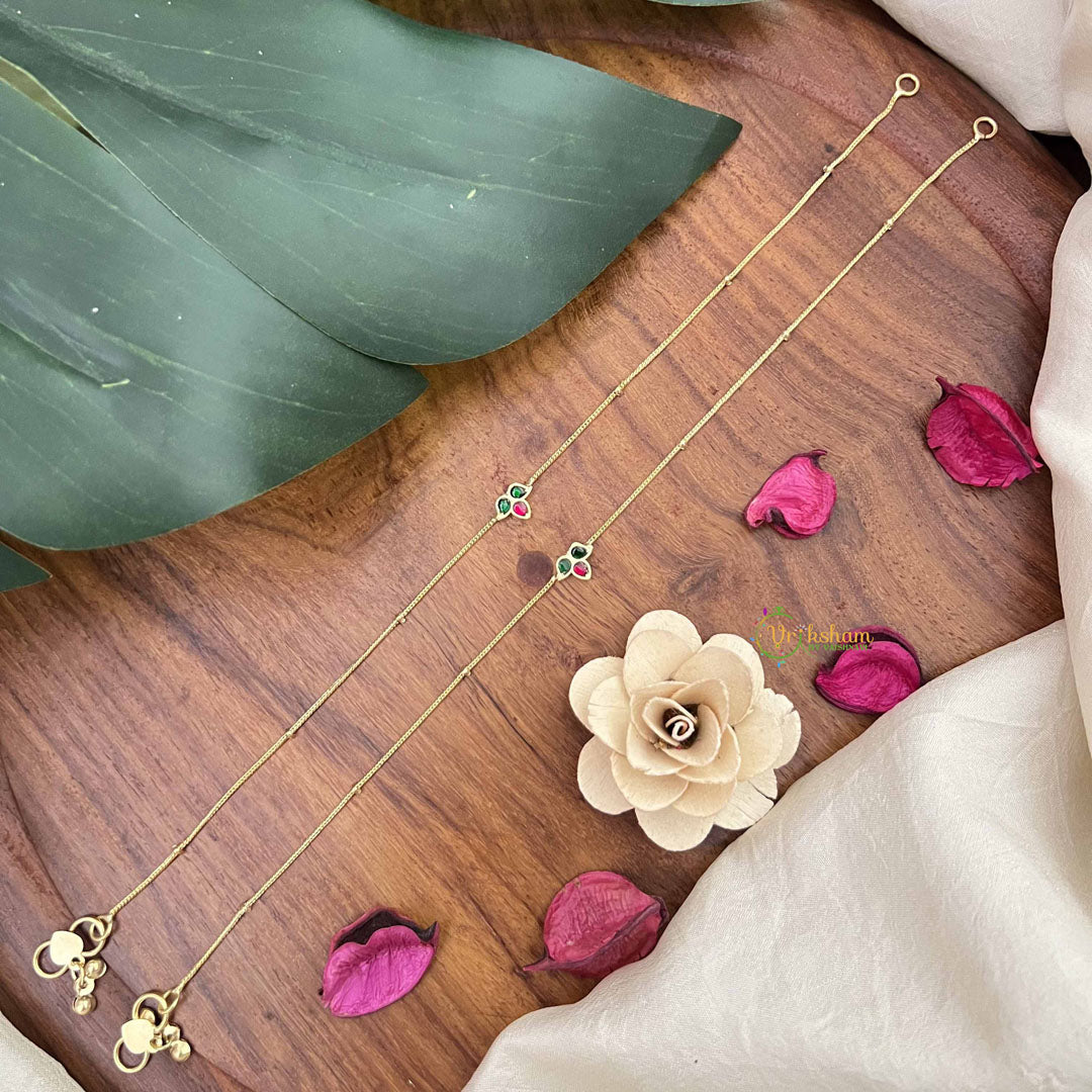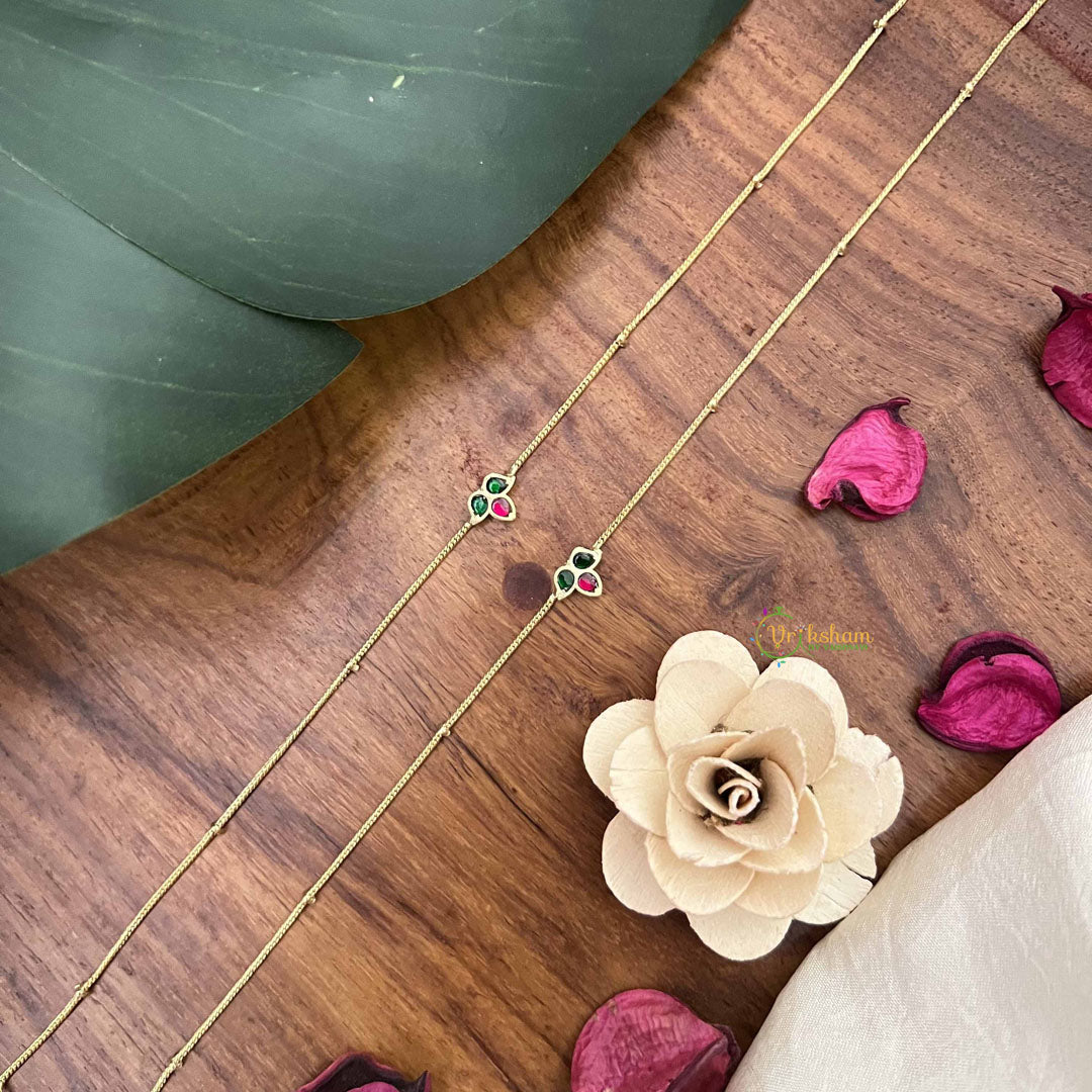 Introduce refined elegance with these Elegant Trio Stone Pendant Anklets, featuring a harmonious arrangement of three vibrant red and green stones. The thoughtfully composed design creates visual balance and movement, with each stone complementing the others in a sophisticated pendant setting. The interplay of rich red and verdant green tones adds depth and character to your ankle jewelry collection. Versatile enough for both festive occasions and elevated everyday styling, these anklets showcase meticulous craftsmanship and artistic vision. An ideal choice for those who appreciate jewelry that combines classical beauty with contemporary sensibility and refined aesthetic appeal.