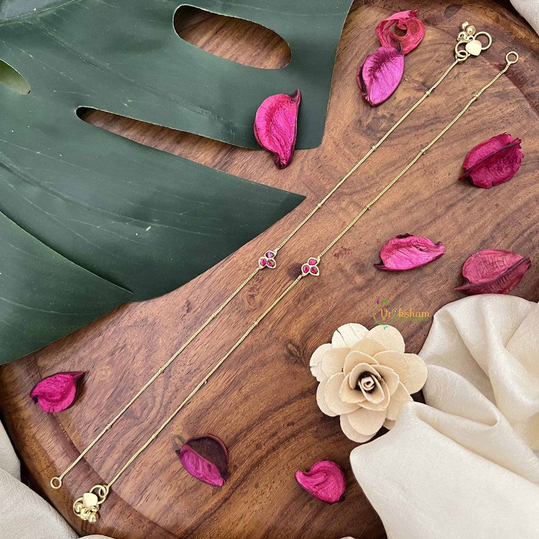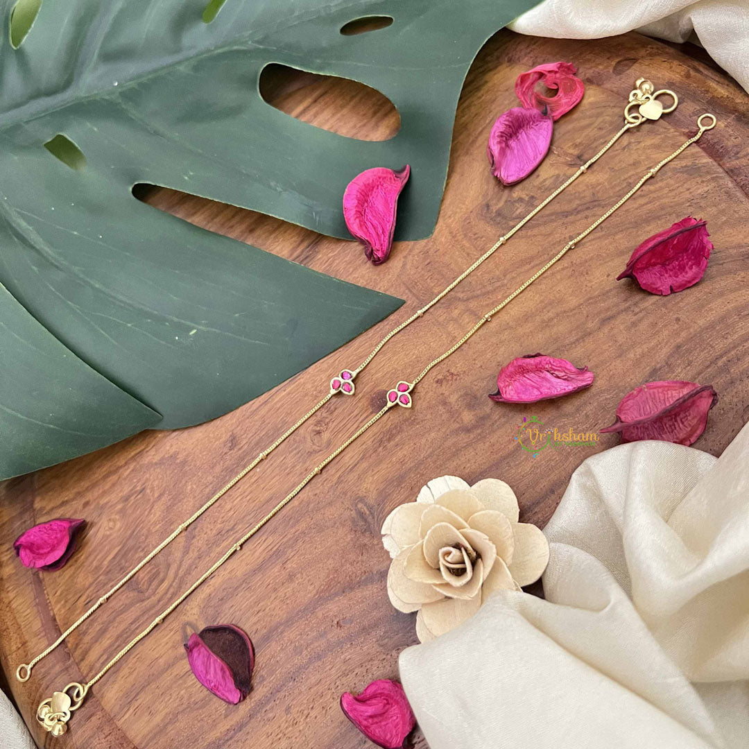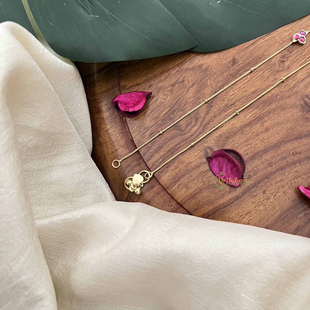 Embrace understated sophistication with these Elegant Trio Stone Pendant Anklets in rich red. Featuring three carefully curated stones arranged in a refined pendant setting, these anklets create an impression of effortless elegance and artistic restraint. The monochromatic red palette allows the stones' natural luminosity to shine, while the pendant design adds graceful movement and visual interest. Crafted with meticulous attention to detail, they seamlessly transition from formal celebrations to refined daily wear. Perfect for those who value jewelry that reflects cultural appreciation, superior craftsmanship, and a commitment to timeless beauty that transcends fleeting trends