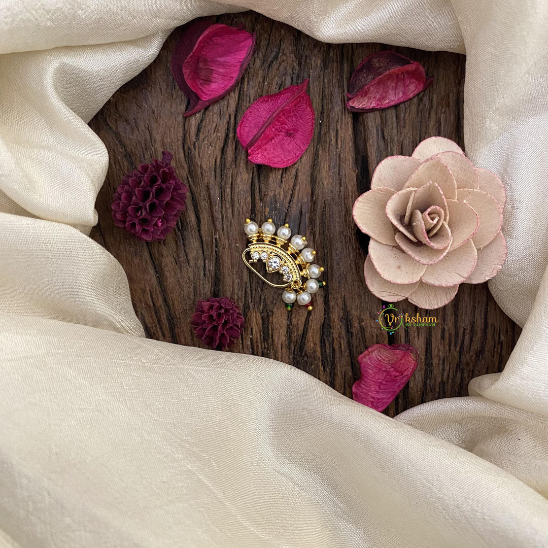 Vriksham Elegant White AD Stone Nath / Nose pin-Pearl-G15902