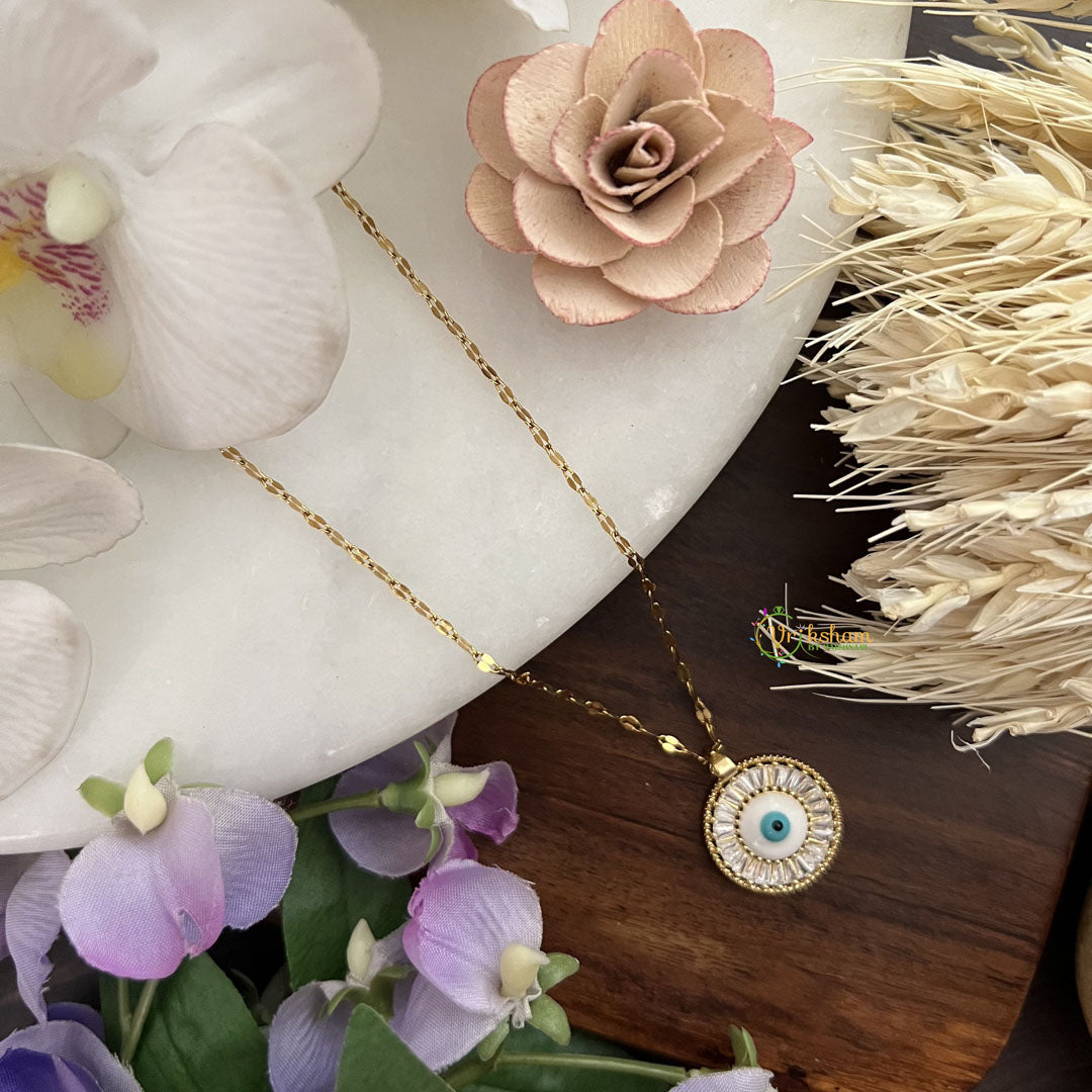 Dress up in style with our Vriksham Evil Eye Pendant Anti Tarnish Stainless Steel Necklace Chain. Made from premium stainless steel, this necklace chain is not only an elegant addition to your wardrobe but also offers protection from the evil eye. Embrace luxury and sophistication with Vriksham.